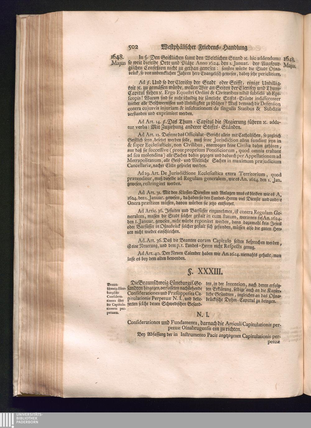 Sechster Theil (1736) Worinnen enthalten ist, was vom Monath Junio des Jahrs 1648. biß zu dem, im Jahr 1649. völlig erfolgten Schluß und Ende des Universal-Friedens-Congressus zu Oßnabrück und Münster, gehandelt und geschlossen worden