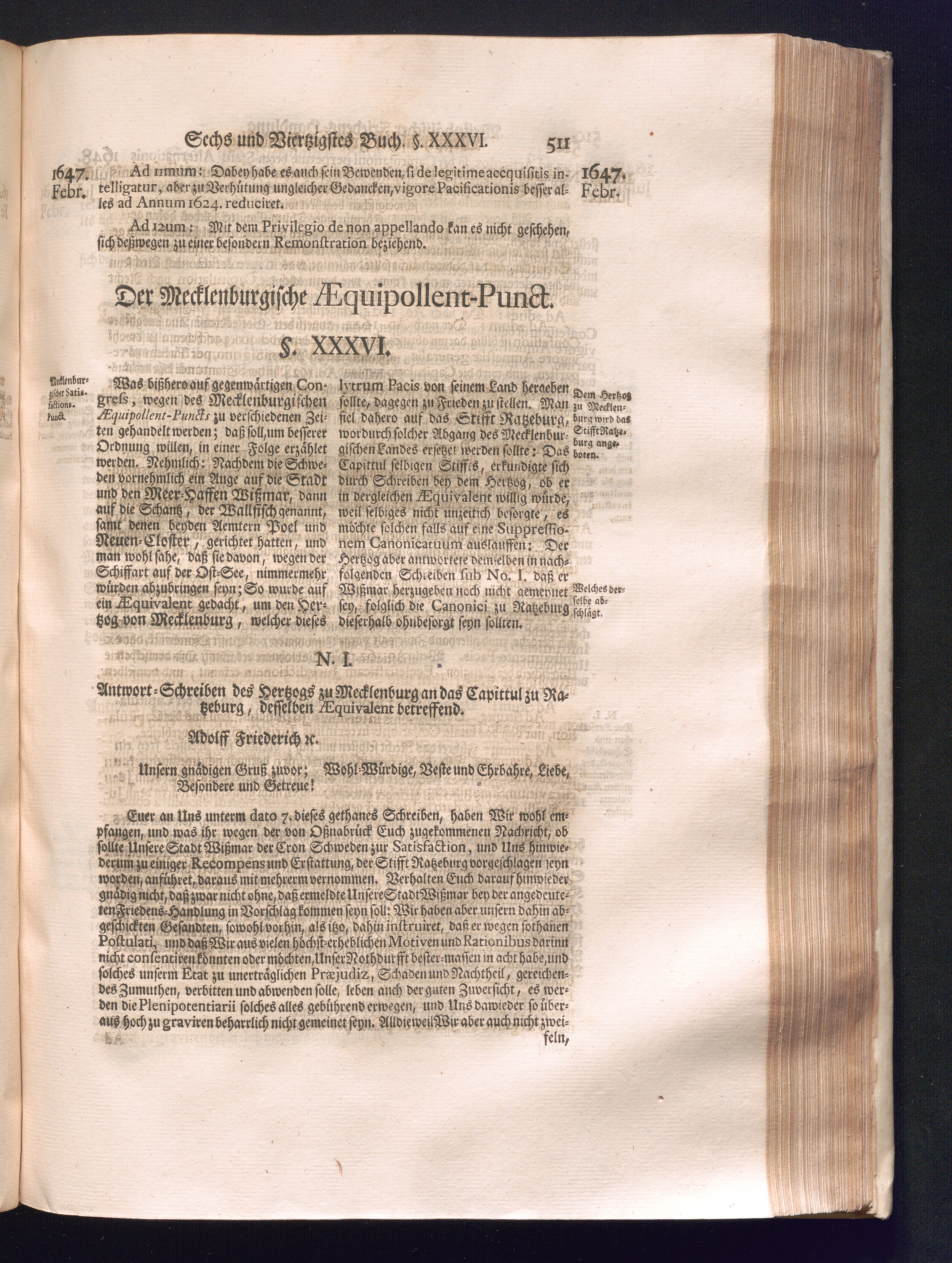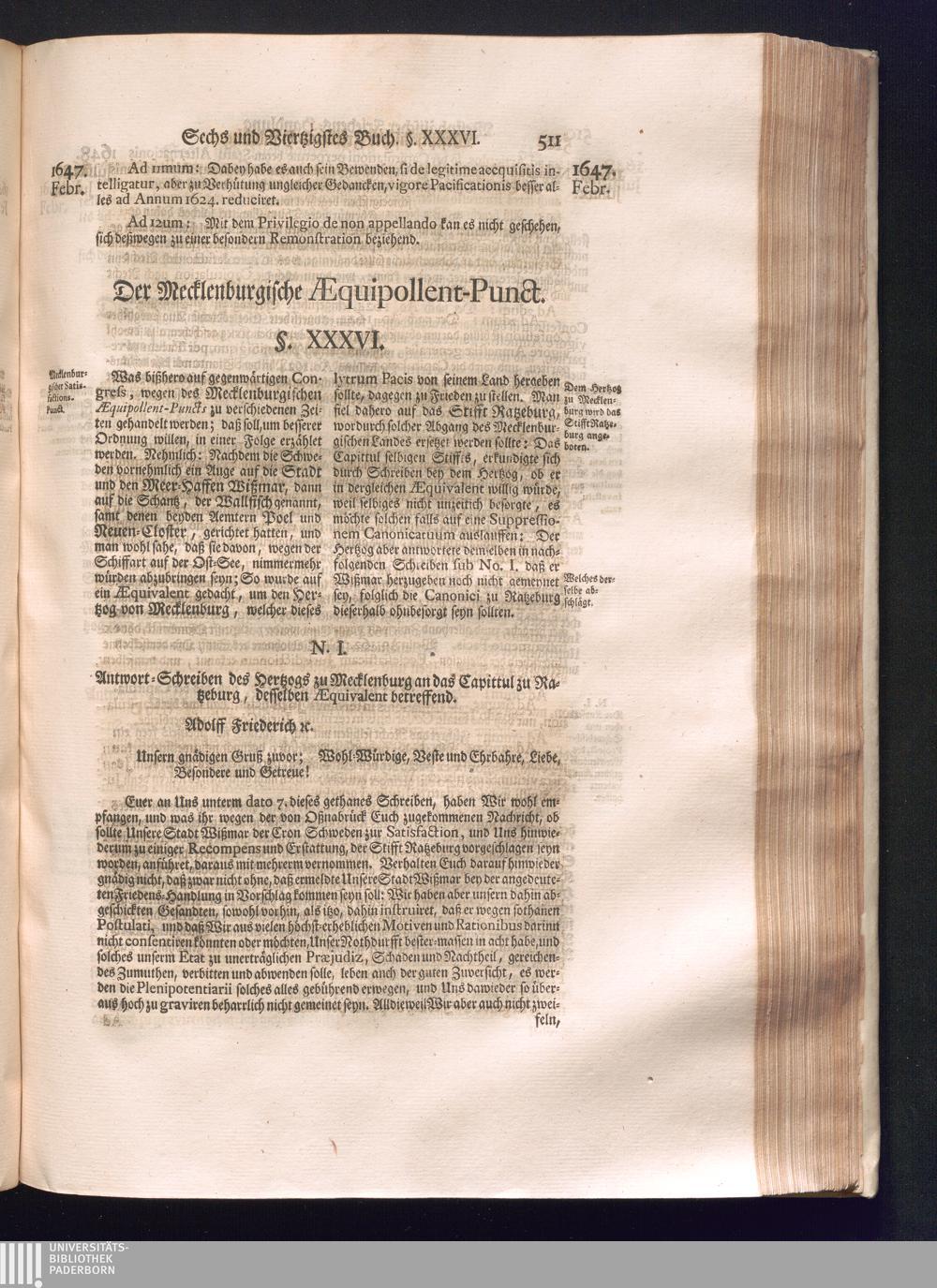 Sechster Theil (1736) Worinnen enthalten ist, was vom Monath Junio des Jahrs 1648. biß zu dem, im Jahr 1649. völlig erfolgten Schluß und Ende des Universal-Friedens-Congressus zu Oßnabrück und Münster, gehandelt und geschlossen worden
