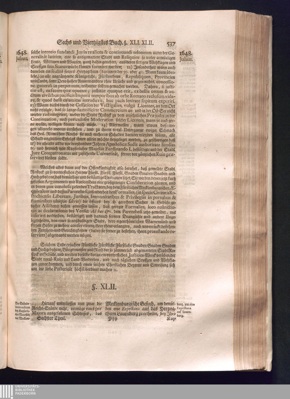 Sechster Theil (1736) Worinnen enthalten ist, was vom Monath Junio des Jahrs 1648. biß zu dem, im Jahr 1649. völlig erfolgten Schluß und Ende des Universal-Friedens-Congressus zu Oßnabrück und Münster, gehandelt und geschlossen worden
