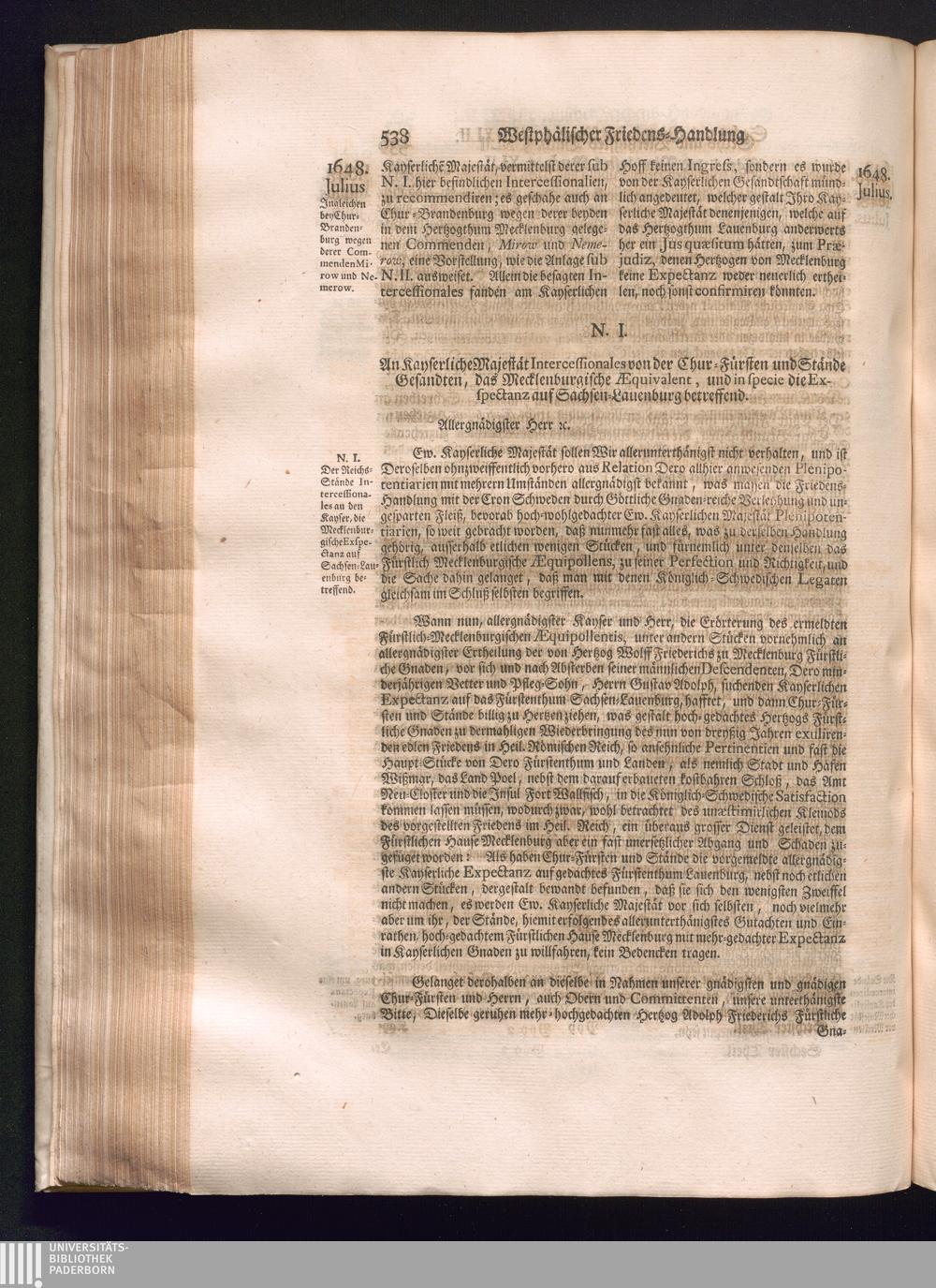 Sechster Theil (1736) Worinnen enthalten ist, was vom Monath Junio des Jahrs 1648. biß zu dem, im Jahr 1649. völlig erfolgten Schluß und Ende des Universal-Friedens-Congressus zu Oßnabrück und Münster, gehandelt und geschlossen worden