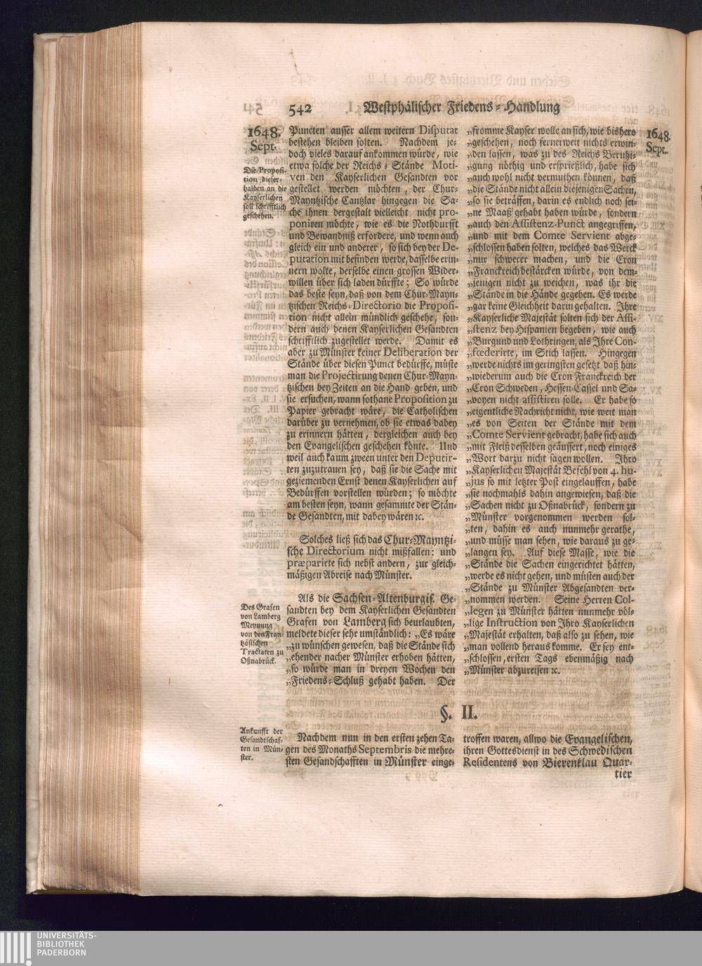 Sechster Theil (1736) Worinnen enthalten ist, was vom Monath Junio des Jahrs 1648. biß zu dem, im Jahr 1649. völlig erfolgten Schluß und Ende des Universal-Friedens-Congressus zu Oßnabrück und Münster, gehandelt und geschlossen worden