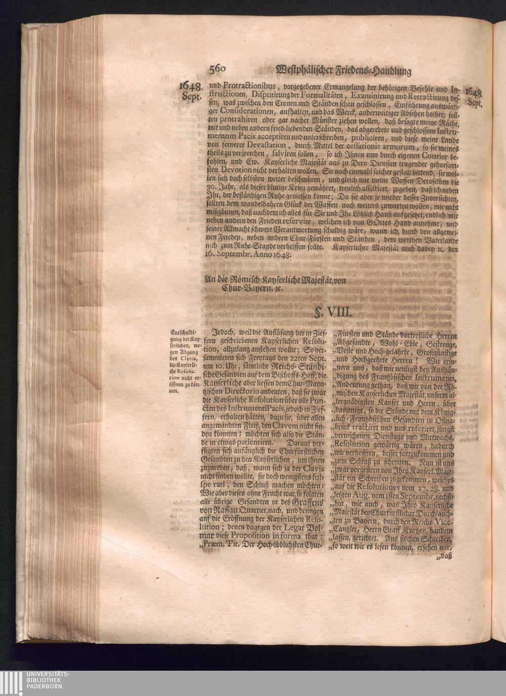Sechster Theil (1736) Worinnen enthalten ist, was vom Monath Junio des Jahrs 1648. biß zu dem, im Jahr 1649. völlig erfolgten Schluß und Ende des Universal-Friedens-Congressus zu Oßnabrück und Münster, gehandelt und geschlossen worden