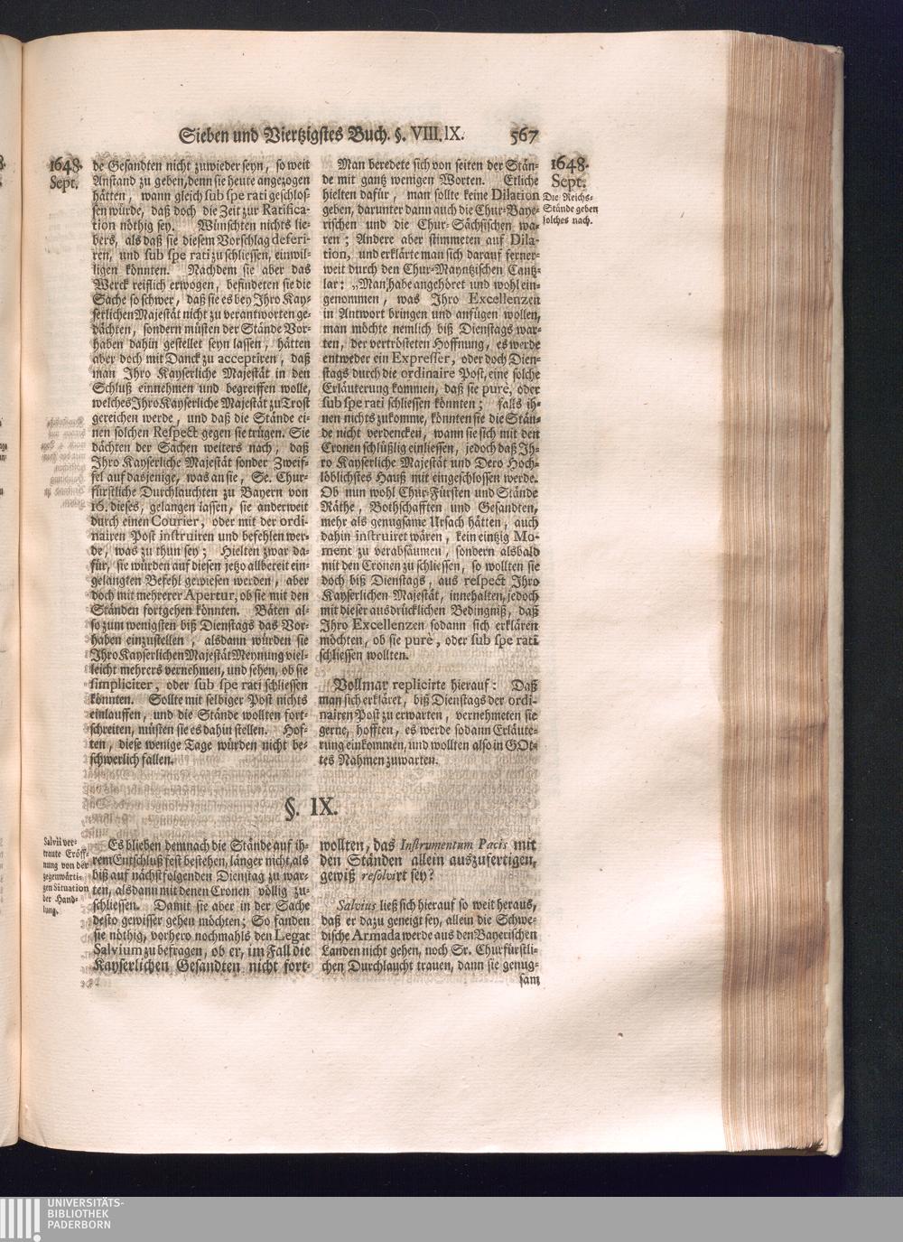 Sechster Theil (1736) Worinnen enthalten ist, was vom Monath Junio des Jahrs 1648. biß zu dem, im Jahr 1649. völlig erfolgten Schluß und Ende des Universal-Friedens-Congressus zu Oßnabrück und Münster, gehandelt und geschlossen worden