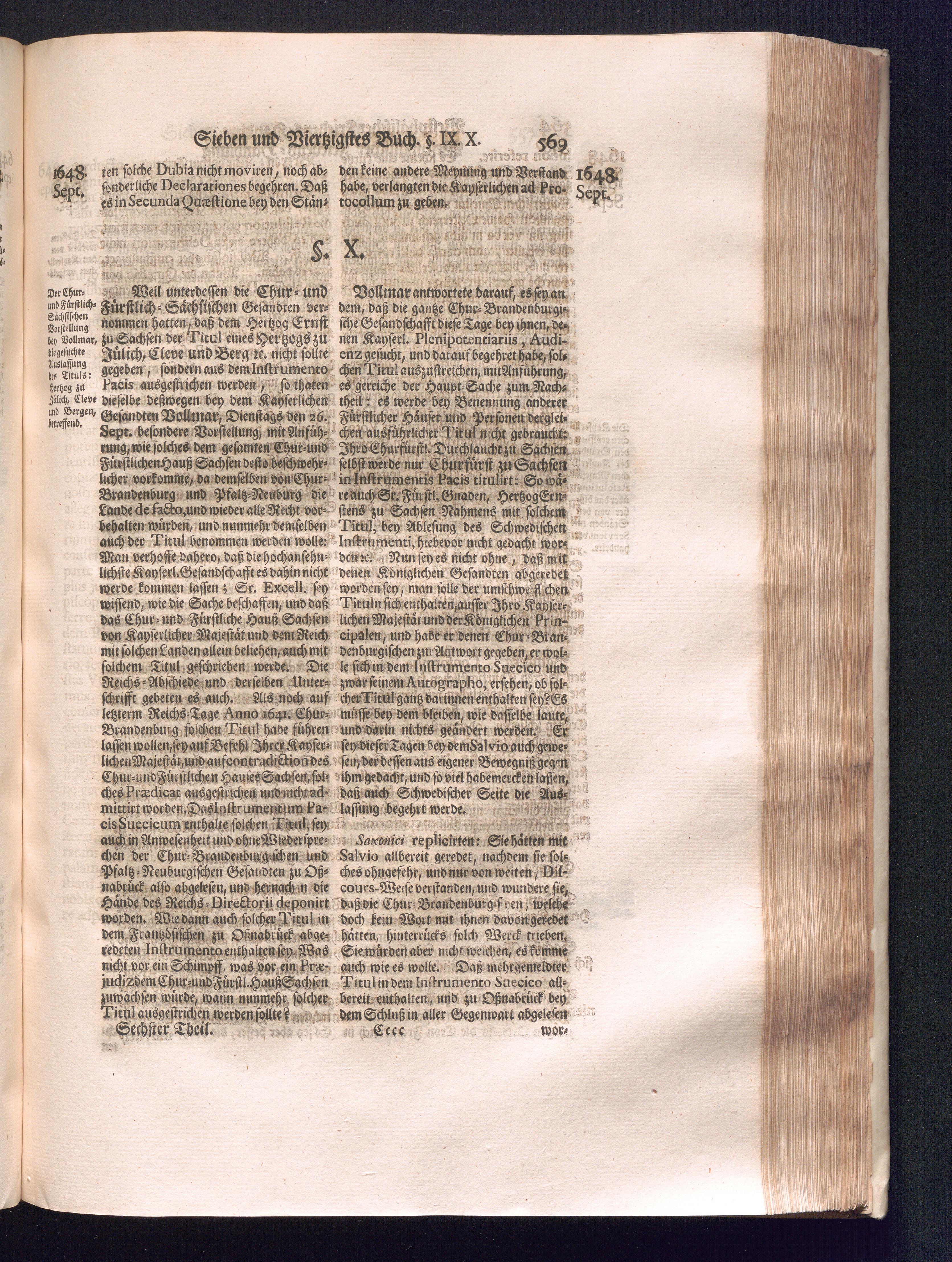 Sechster Theil (1736) Worinnen enthalten ist, was vom Monath Junio des Jahrs 1648. biß zu dem, im Jahr 1649. völlig erfolgten Schluß und Ende des Universal-Friedens-Congressus zu Oßnabrück und Münster, gehandelt und geschlossen worden