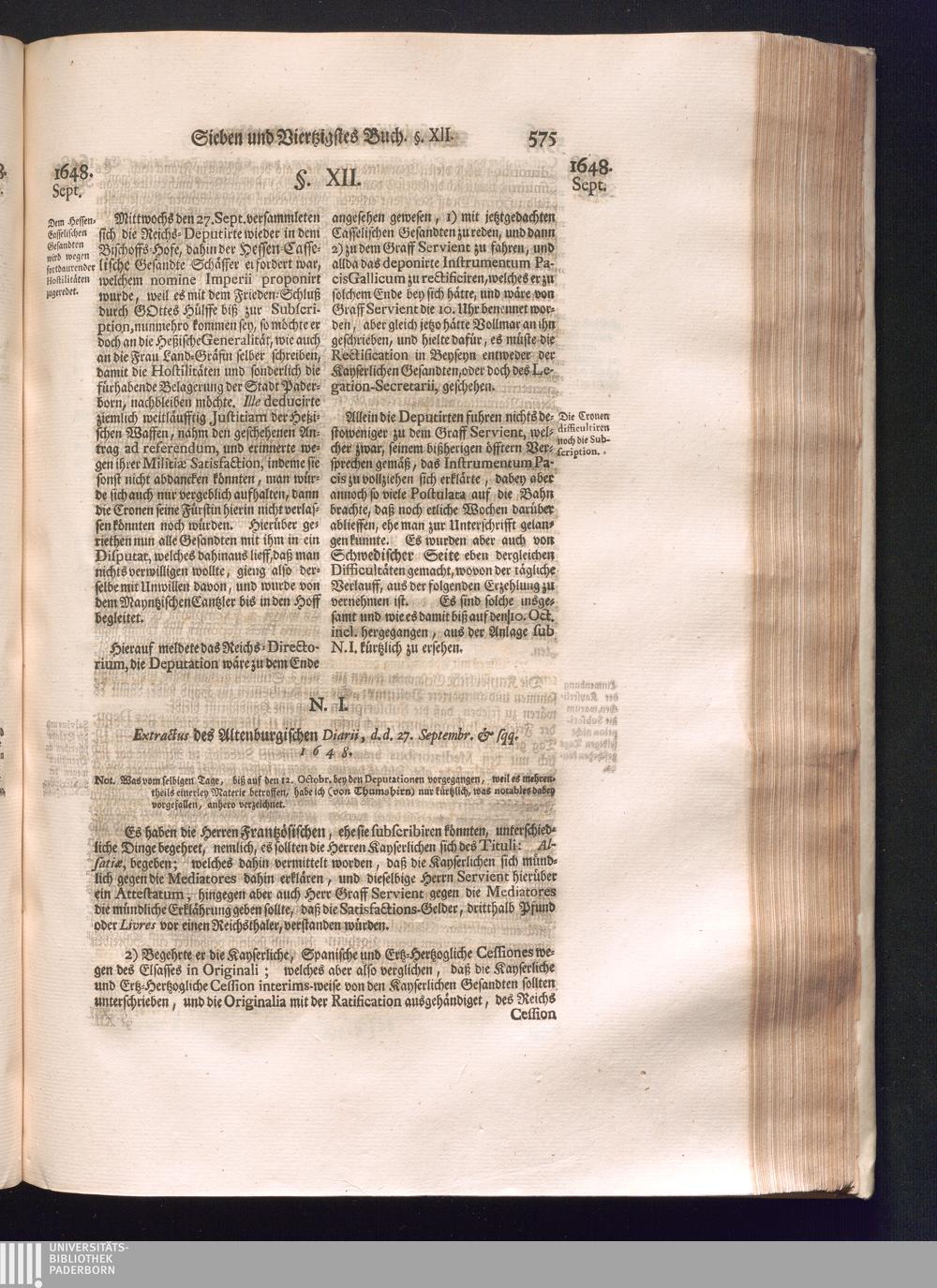 Sechster Theil (1736) Worinnen enthalten ist, was vom Monath Junio des Jahrs 1648. biß zu dem, im Jahr 1649. völlig erfolgten Schluß und Ende des Universal-Friedens-Congressus zu Oßnabrück und Münster, gehandelt und geschlossen worden