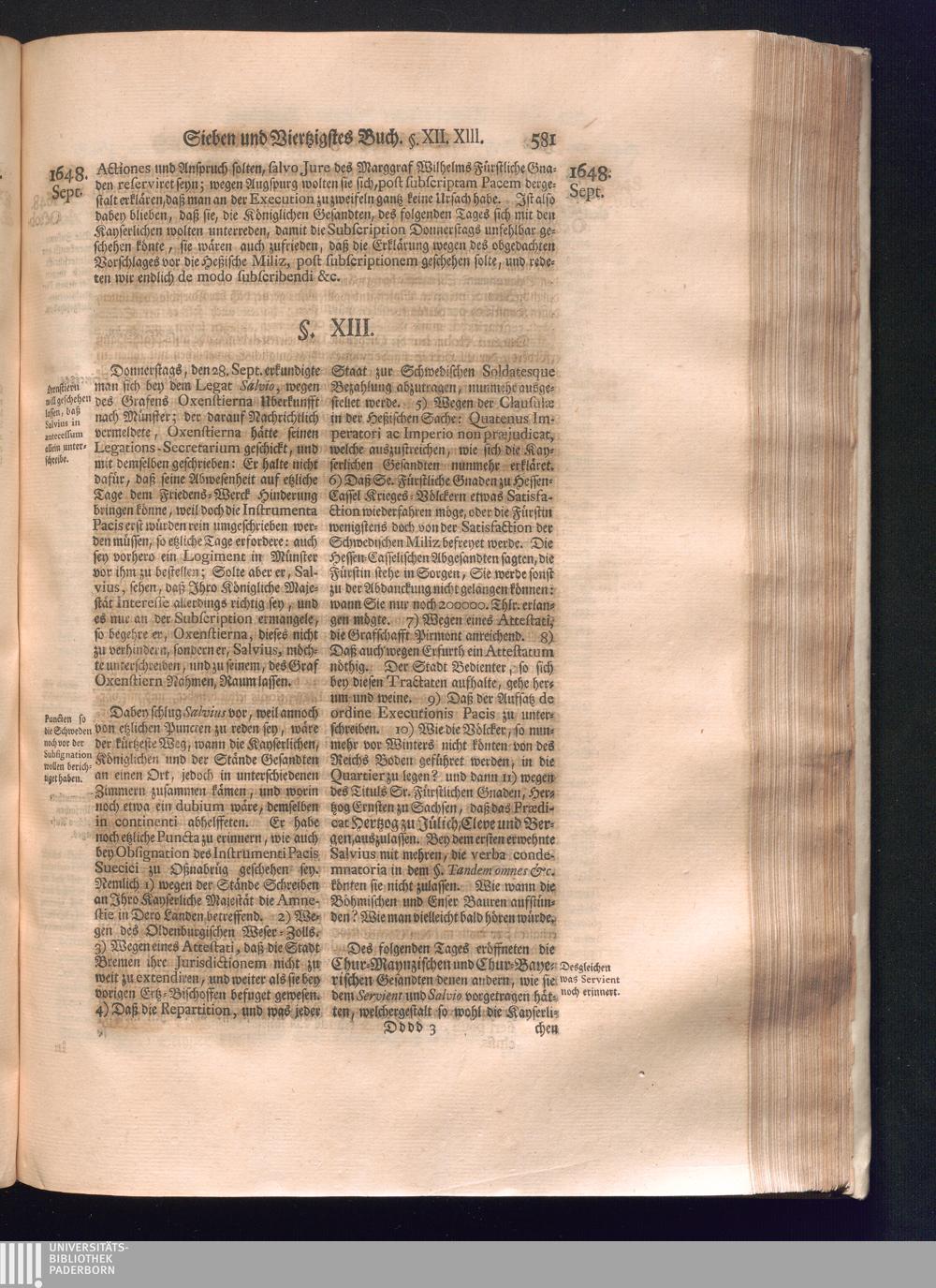 Sechster Theil (1736) Worinnen enthalten ist, was vom Monath Junio des Jahrs 1648. biß zu dem, im Jahr 1649. völlig erfolgten Schluß und Ende des Universal-Friedens-Congressus zu Oßnabrück und Münster, gehandelt und geschlossen worden