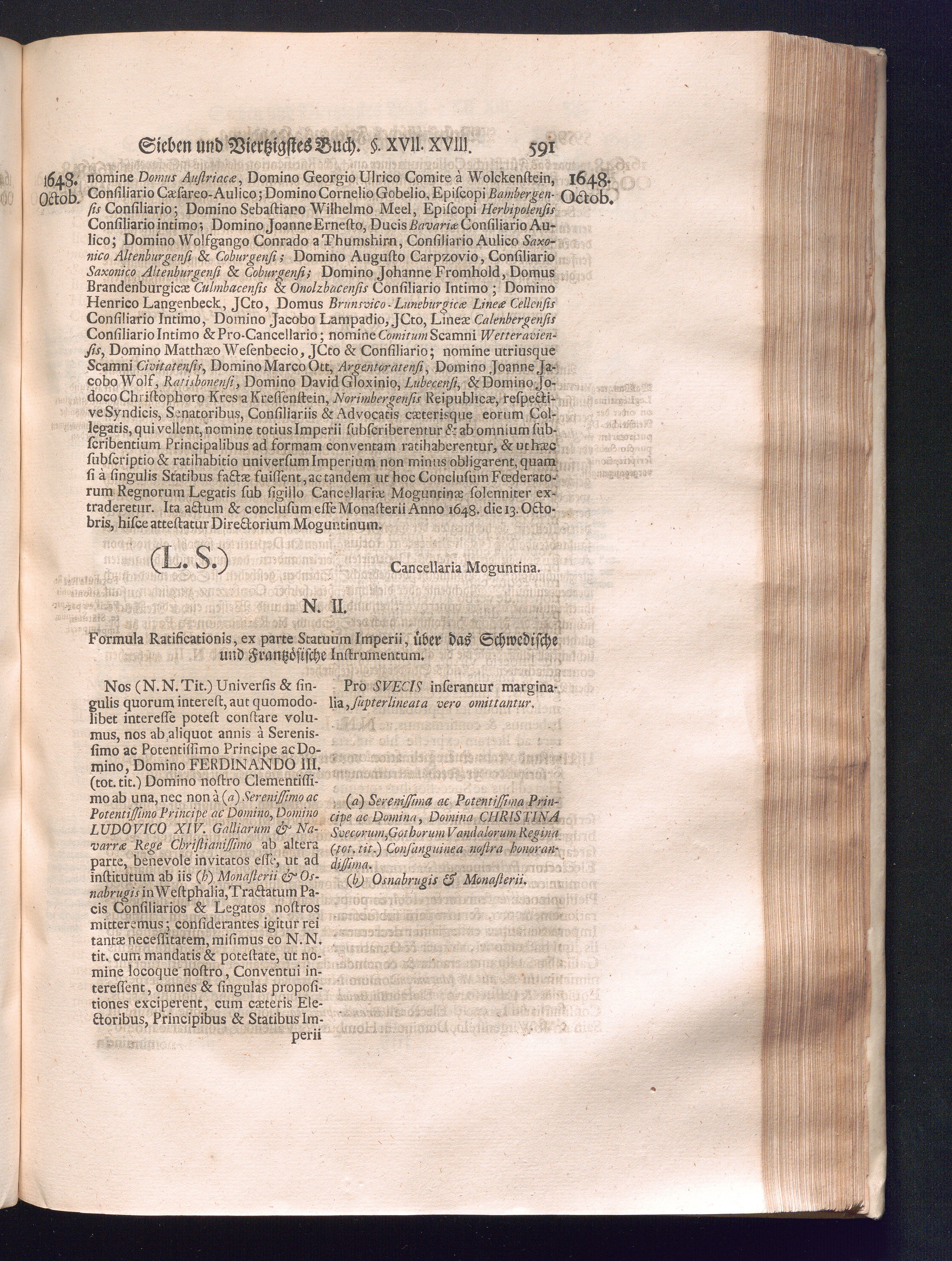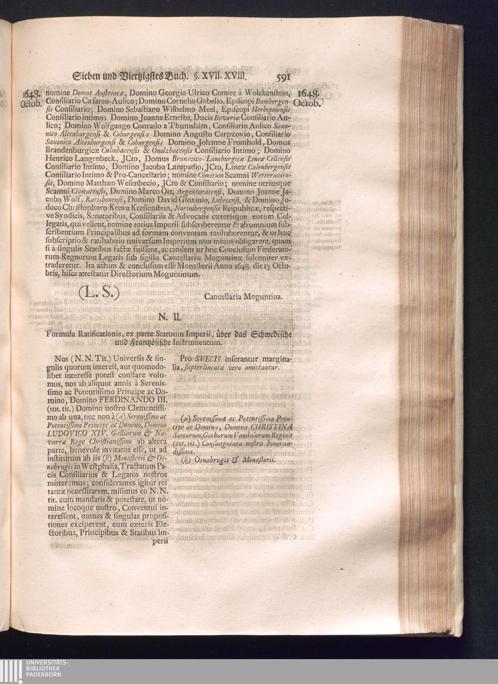 Sechster Theil (1736) Worinnen enthalten ist, was vom Monath Junio des Jahrs 1648. biß zu dem, im Jahr 1649. völlig erfolgten Schluß und Ende des Universal-Friedens-Congressus zu Oßnabrück und Münster, gehandelt und geschlossen worden