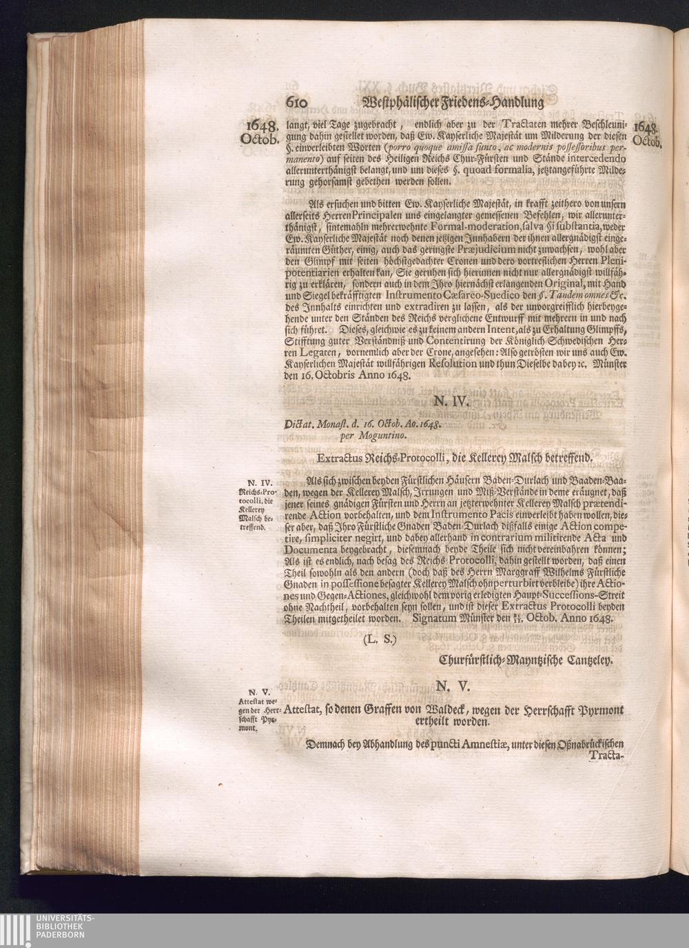 Sechster Theil (1736) Worinnen enthalten ist, was vom Monath Junio des Jahrs 1648. biß zu dem, im Jahr 1649. völlig erfolgten Schluß und Ende des Universal-Friedens-Congressus zu Oßnabrück und Münster, gehandelt und geschlossen worden
