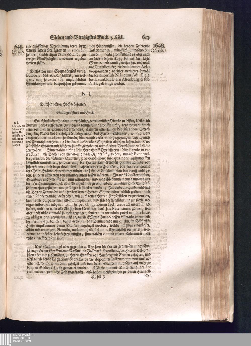 Sechster Theil (1736) Worinnen enthalten ist, was vom Monath Junio des Jahrs 1648. biß zu dem, im Jahr 1649. völlig erfolgten Schluß und Ende des Universal-Friedens-Congressus zu Oßnabrück und Münster, gehandelt und geschlossen worden
