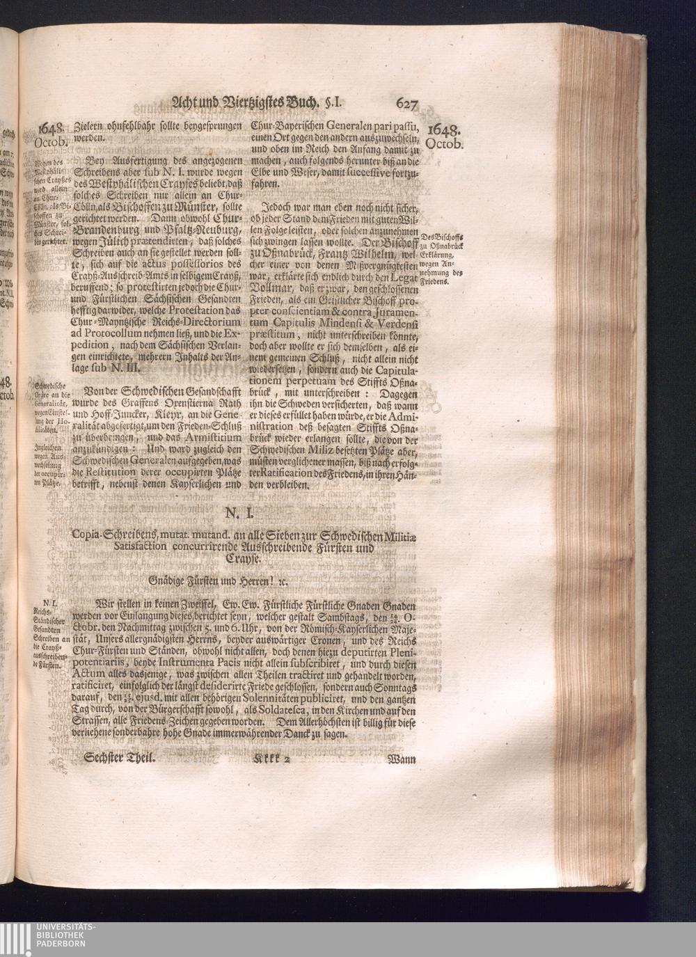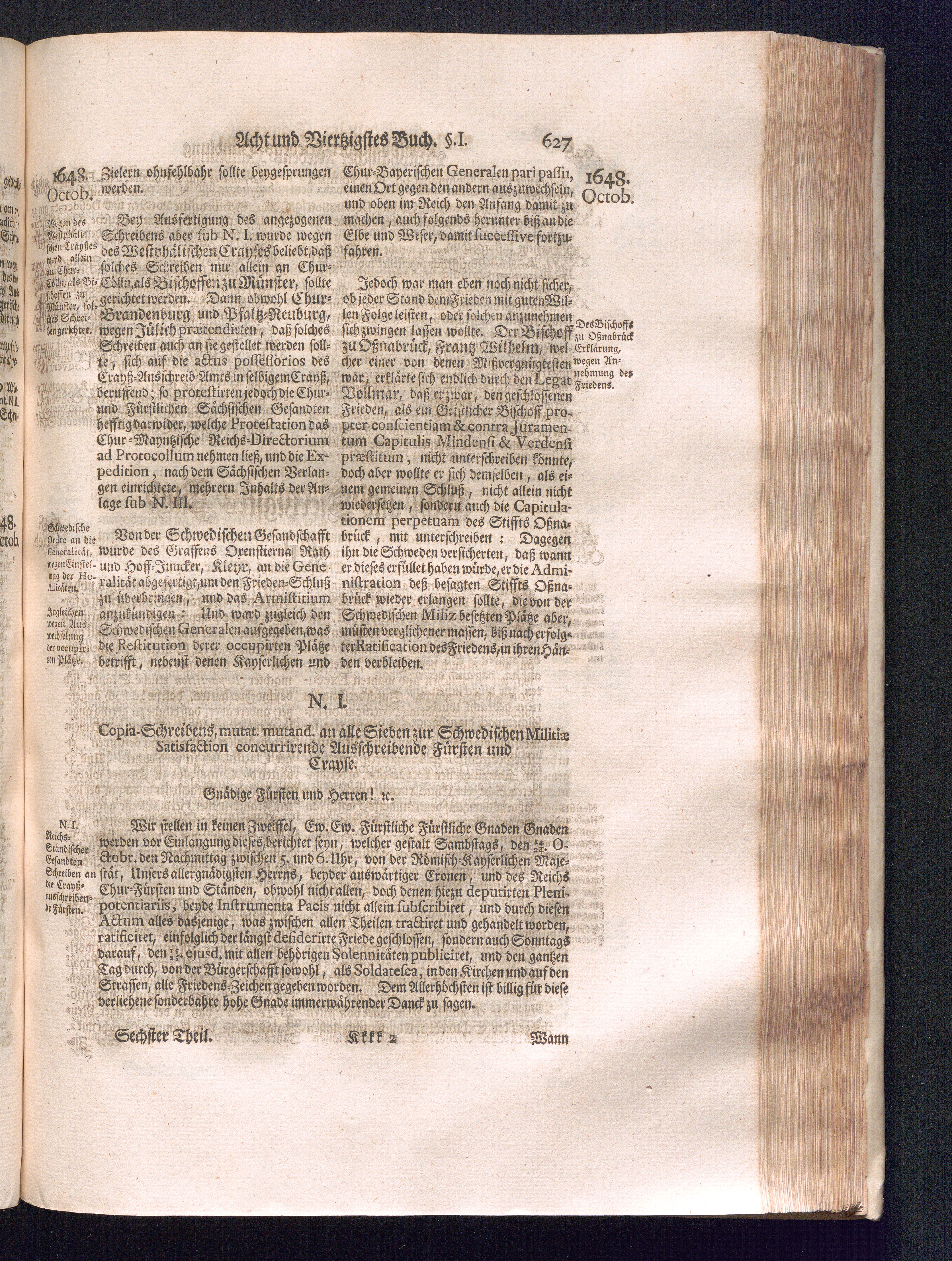 Sechster Theil (1736) Worinnen enthalten ist, was vom Monath Junio des Jahrs 1648. biß zu dem, im Jahr 1649. völlig erfolgten Schluß und Ende des Universal-Friedens-Congressus zu Oßnabrück und Münster, gehandelt und geschlossen worden
