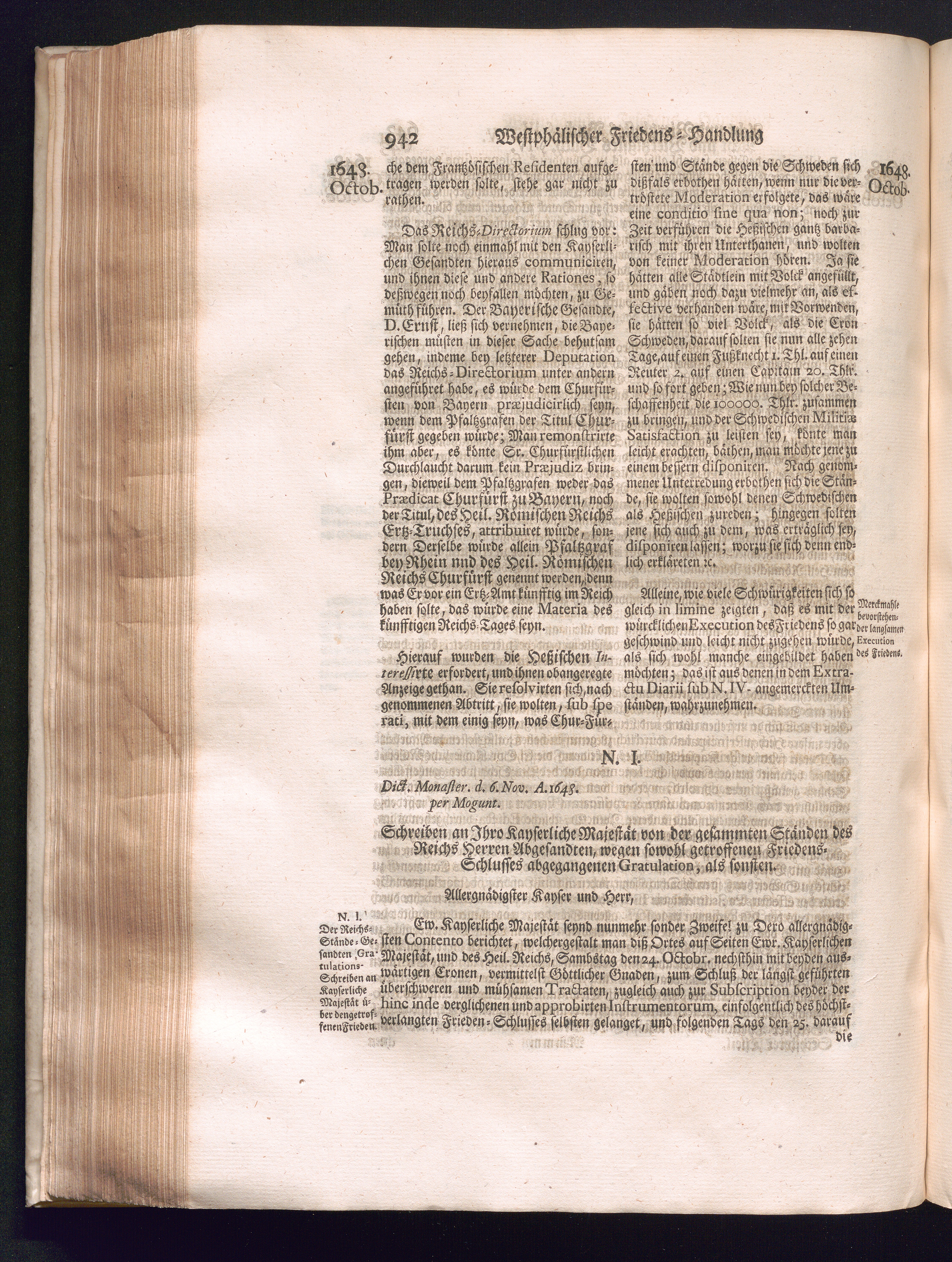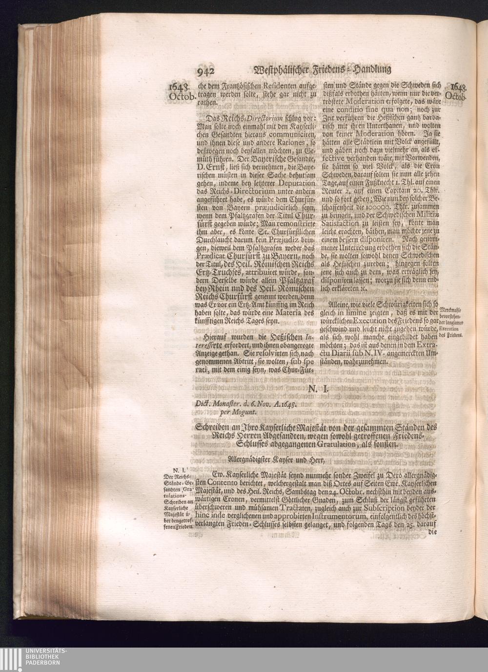 Sechster Theil (1736) Worinnen enthalten ist, was vom Monath Junio des Jahrs 1648. biß zu dem, im Jahr 1649. völlig erfolgten Schluß und Ende des Universal-Friedens-Congressus zu Oßnabrück und Münster, gehandelt und geschlossen worden