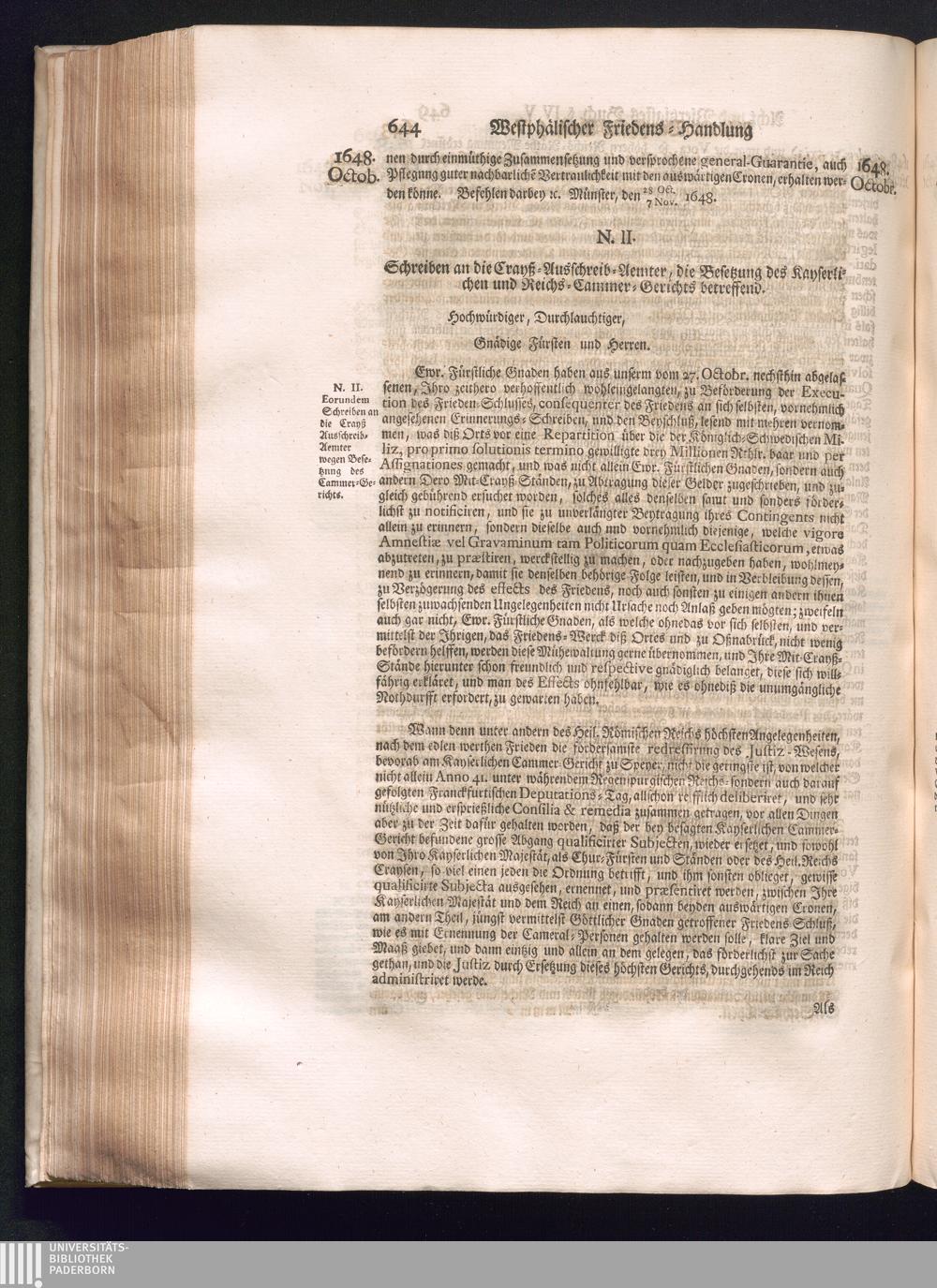 Sechster Theil (1736) Worinnen enthalten ist, was vom Monath Junio des Jahrs 1648. biß zu dem, im Jahr 1649. völlig erfolgten Schluß und Ende des Universal-Friedens-Congressus zu Oßnabrück und Münster, gehandelt und geschlossen worden