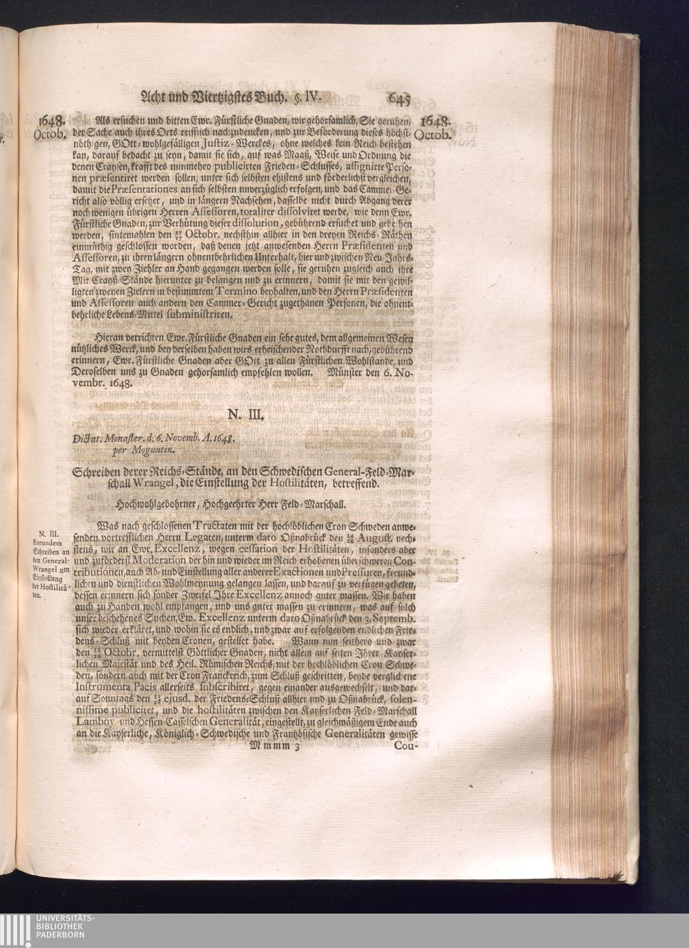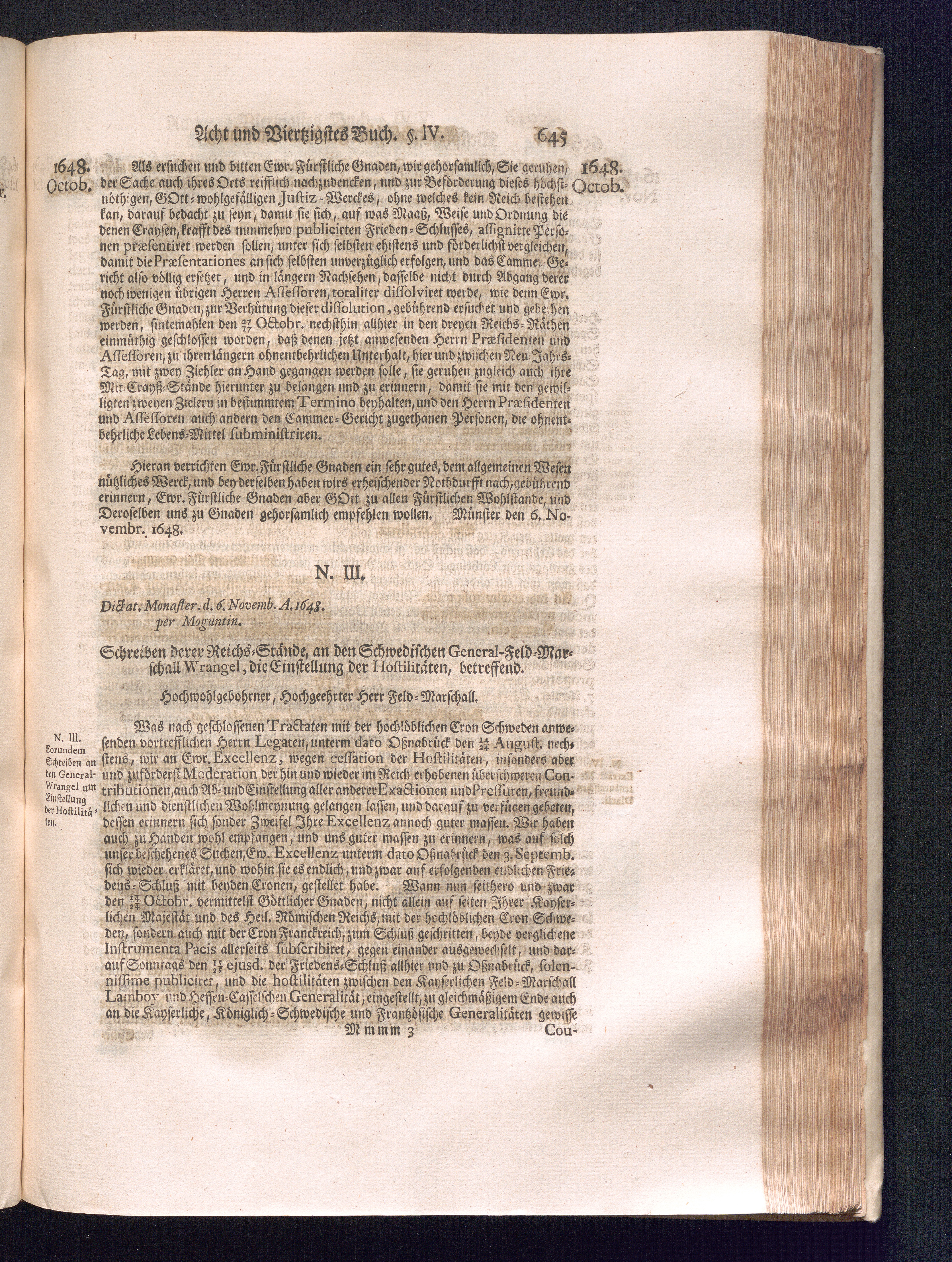 Sechster Theil (1736) Worinnen enthalten ist, was vom Monath Junio des Jahrs 1648. biß zu dem, im Jahr 1649. völlig erfolgten Schluß und Ende des Universal-Friedens-Congressus zu Oßnabrück und Münster, gehandelt und geschlossen worden