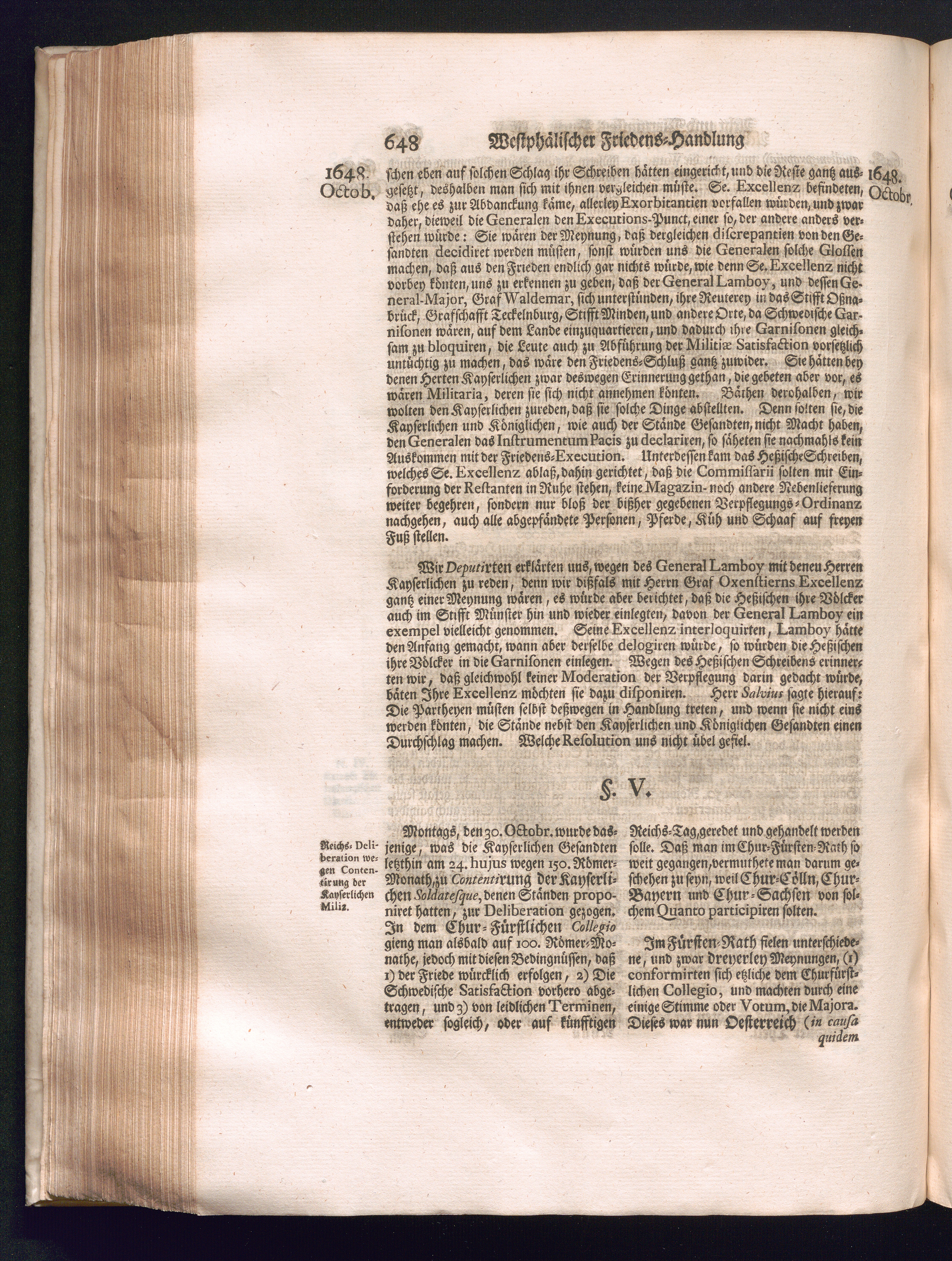 Sechster Theil (1736) Worinnen enthalten ist, was vom Monath Junio des Jahrs 1648. biß zu dem, im Jahr 1649. völlig erfolgten Schluß und Ende des Universal-Friedens-Congressus zu Oßnabrück und Münster, gehandelt und geschlossen worden