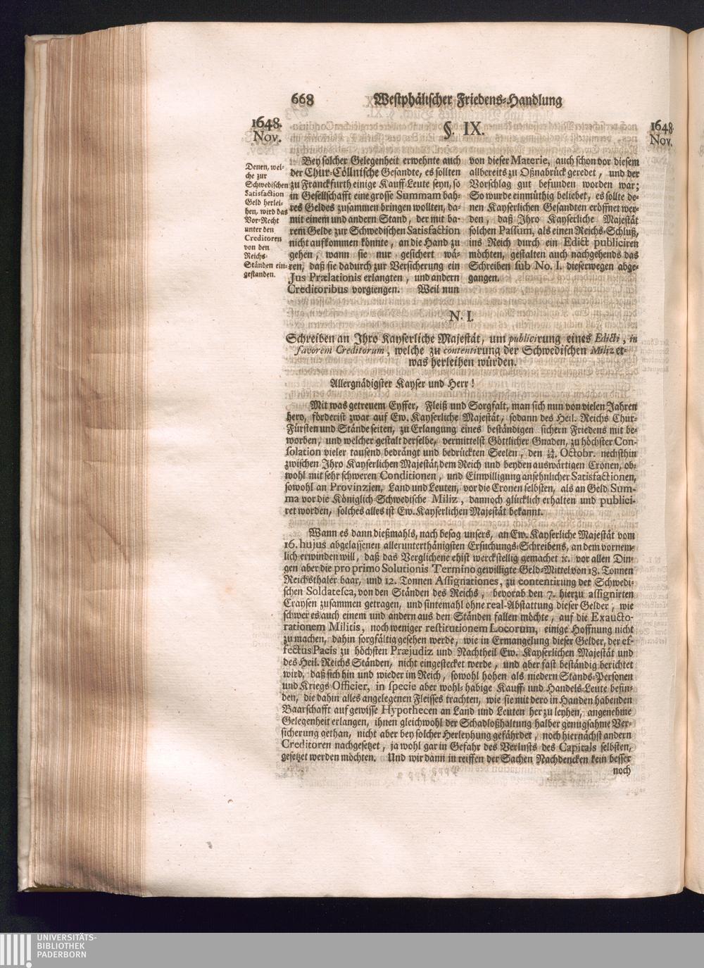 Sechster Theil (1736) Worinnen enthalten ist, was vom Monath Junio des Jahrs 1648. biß zu dem, im Jahr 1649. völlig erfolgten Schluß und Ende des Universal-Friedens-Congressus zu Oßnabrück und Münster, gehandelt und geschlossen worden