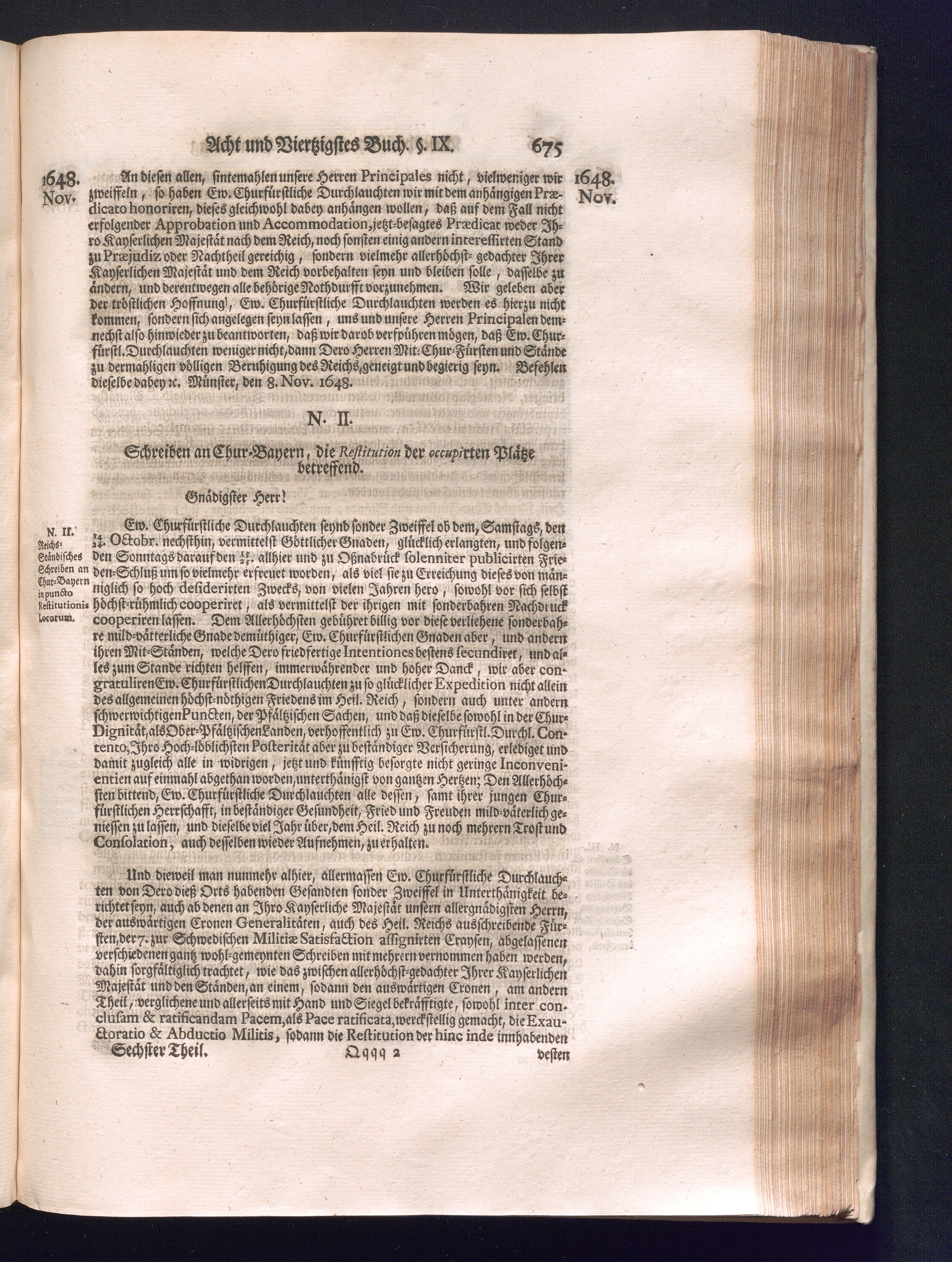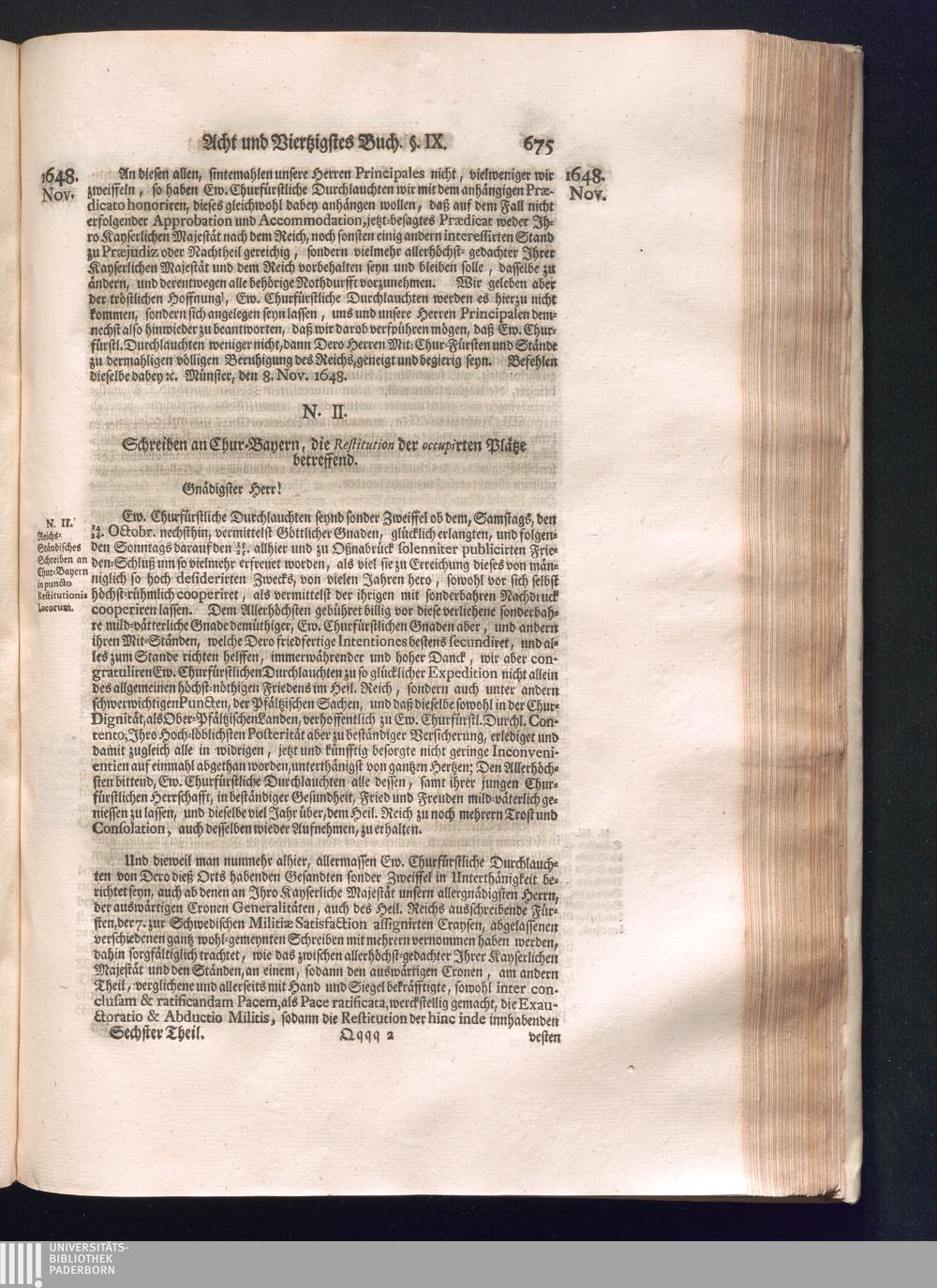 Sechster Theil (1736) Worinnen enthalten ist, was vom Monath Junio des Jahrs 1648. biß zu dem, im Jahr 1649. völlig erfolgten Schluß und Ende des Universal-Friedens-Congressus zu Oßnabrück und Münster, gehandelt und geschlossen worden