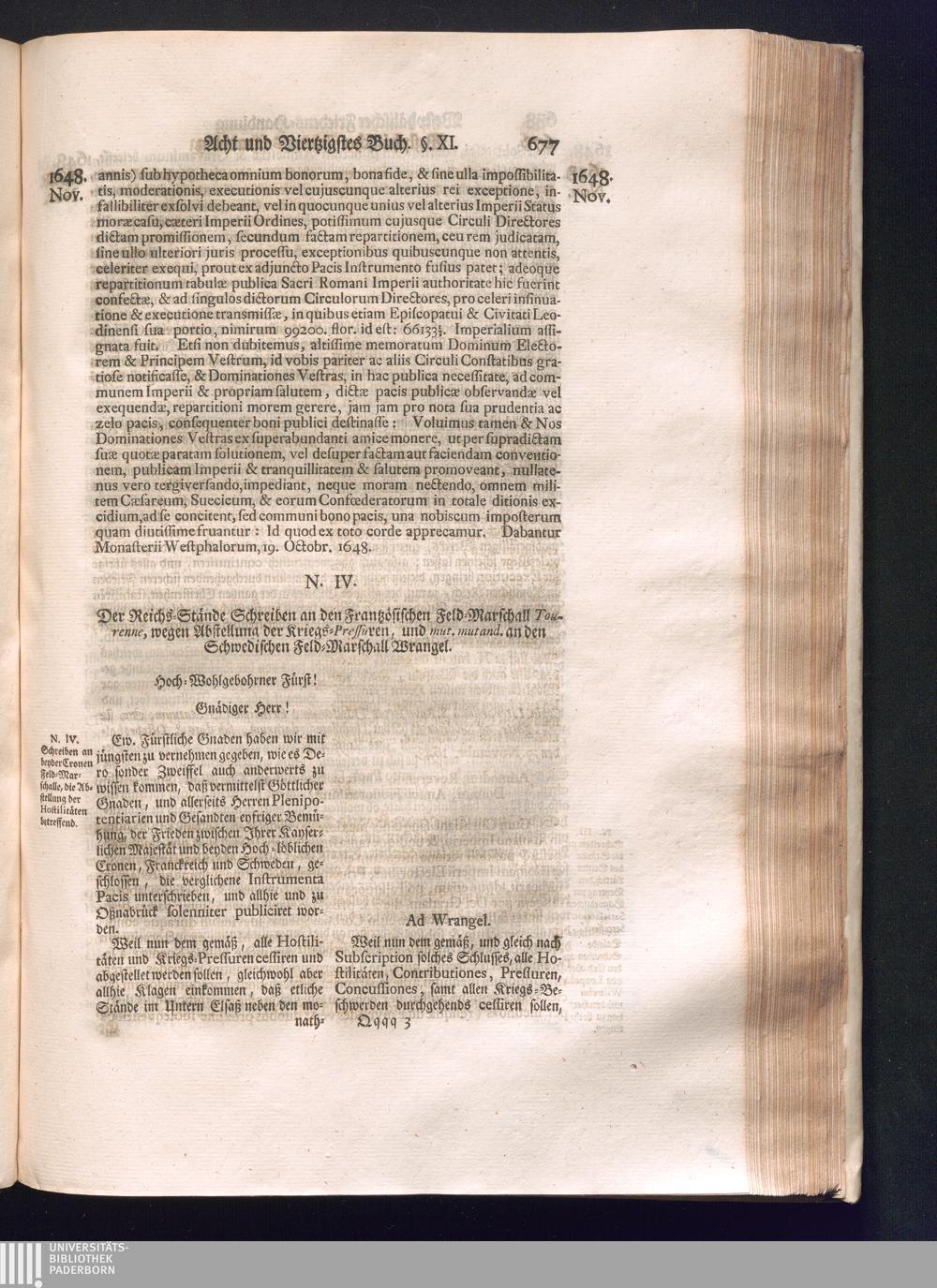 Sechster Theil (1736) Worinnen enthalten ist, was vom Monath Junio des Jahrs 1648. biß zu dem, im Jahr 1649. völlig erfolgten Schluß und Ende des Universal-Friedens-Congressus zu Oßnabrück und Münster, gehandelt und geschlossen worden