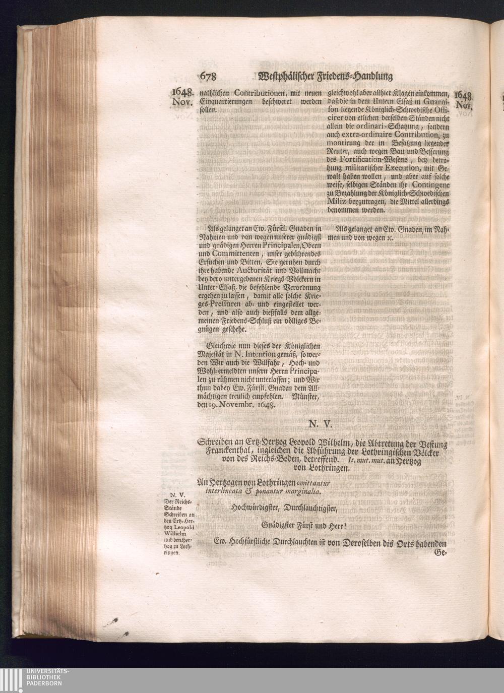 Sechster Theil (1736) Worinnen enthalten ist, was vom Monath Junio des Jahrs 1648. biß zu dem, im Jahr 1649. völlig erfolgten Schluß und Ende des Universal-Friedens-Congressus zu Oßnabrück und Münster, gehandelt und geschlossen worden