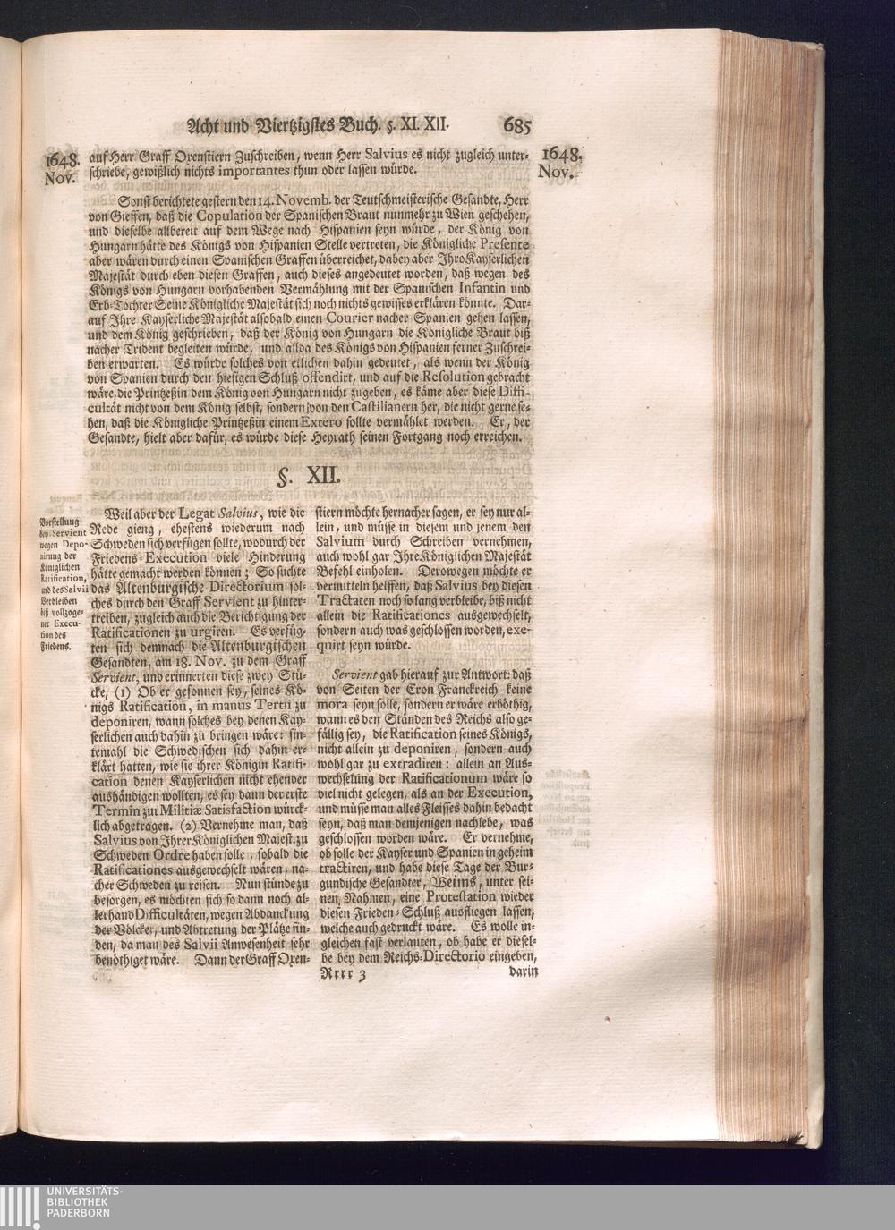 Sechster Theil (1736) Worinnen enthalten ist, was vom Monath Junio des Jahrs 1648. biß zu dem, im Jahr 1649. völlig erfolgten Schluß und Ende des Universal-Friedens-Congressus zu Oßnabrück und Münster, gehandelt und geschlossen worden