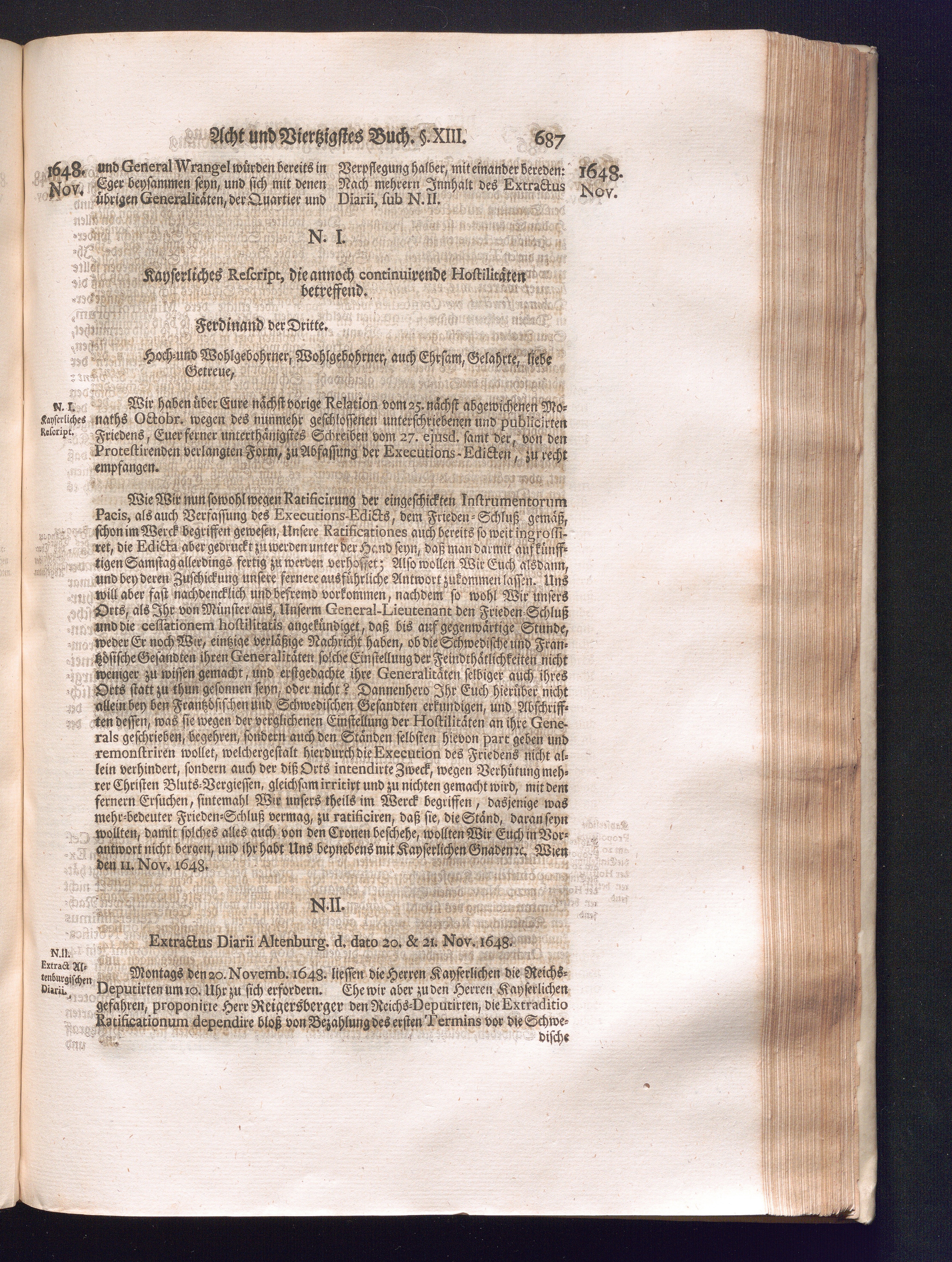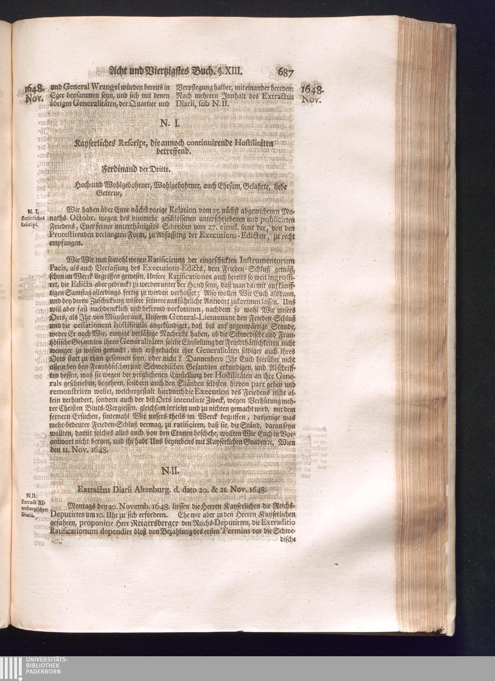 Sechster Theil (1736) Worinnen enthalten ist, was vom Monath Junio des Jahrs 1648. biß zu dem, im Jahr 1649. völlig erfolgten Schluß und Ende des Universal-Friedens-Congressus zu Oßnabrück und Münster, gehandelt und geschlossen worden