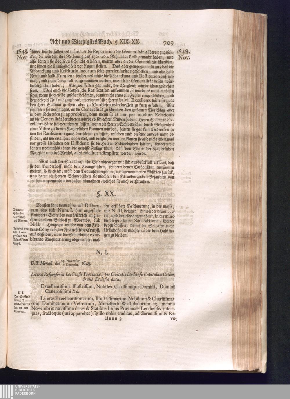 Sechster Theil (1736) Worinnen enthalten ist, was vom Monath Junio des Jahrs 1648. biß zu dem, im Jahr 1649. völlig erfolgten Schluß und Ende des Universal-Friedens-Congressus zu Oßnabrück und Münster, gehandelt und geschlossen worden