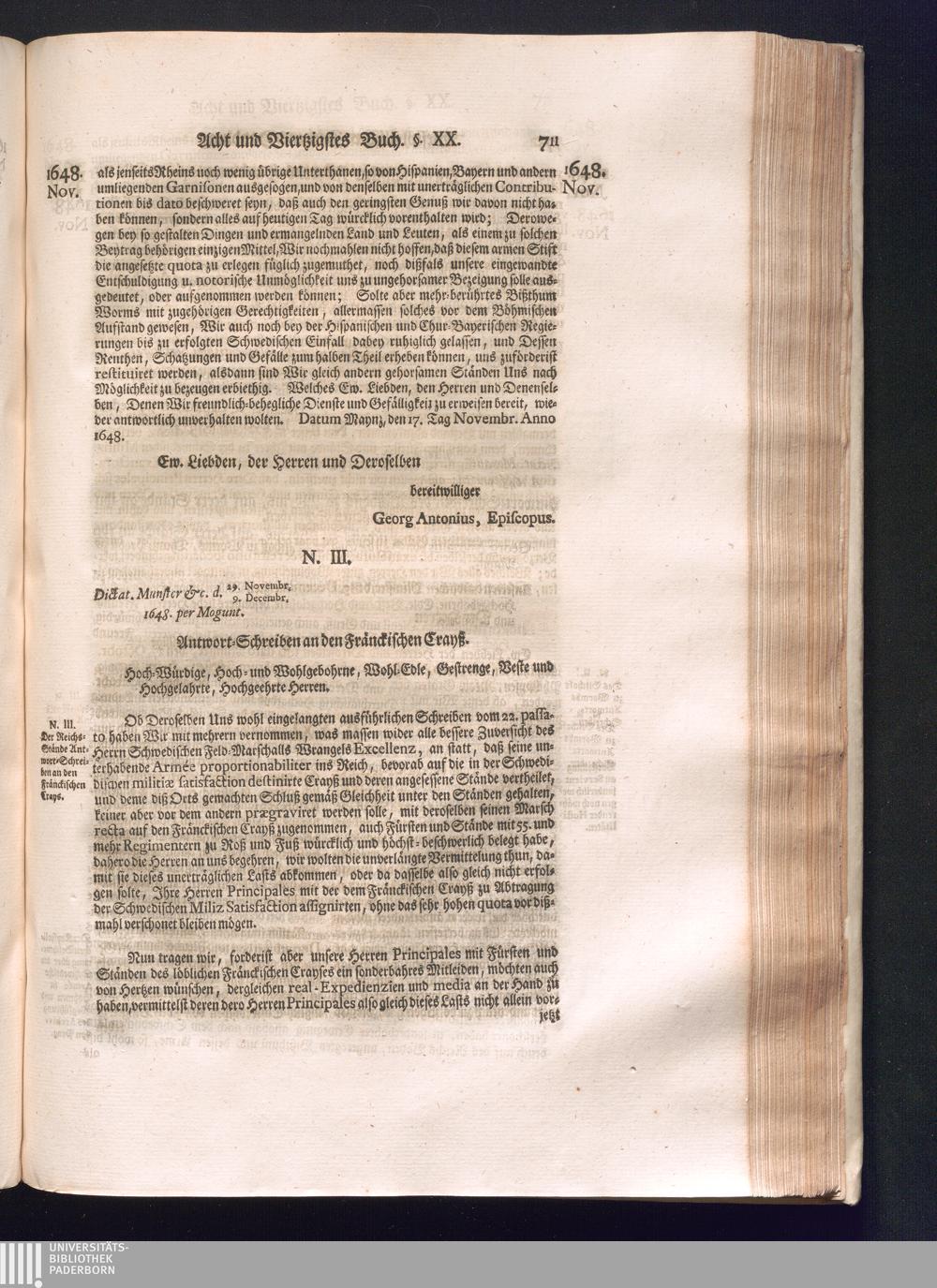 Sechster Theil (1736) Worinnen enthalten ist, was vom Monath Junio des Jahrs 1648. biß zu dem, im Jahr 1649. völlig erfolgten Schluß und Ende des Universal-Friedens-Congressus zu Oßnabrück und Münster, gehandelt und geschlossen worden