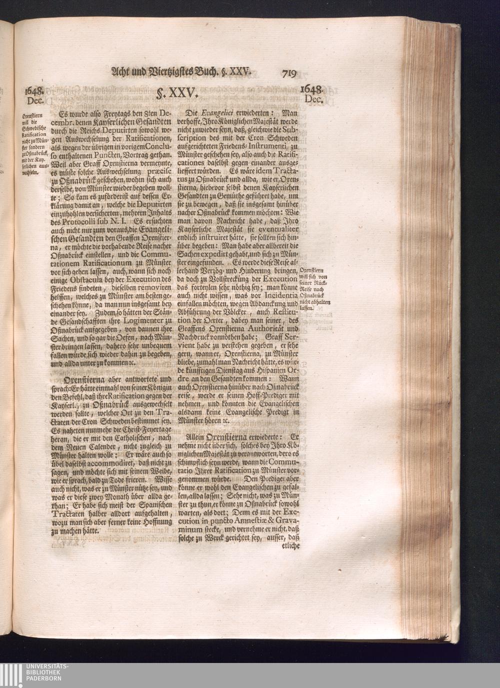 Sechster Theil (1736) Worinnen enthalten ist, was vom Monath Junio des Jahrs 1648. biß zu dem, im Jahr 1649. völlig erfolgten Schluß und Ende des Universal-Friedens-Congressus zu Oßnabrück und Münster, gehandelt und geschlossen worden