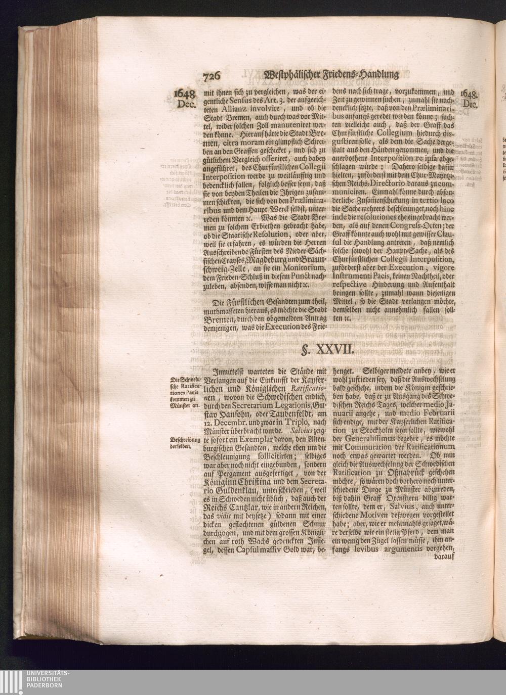 Sechster Theil (1736) Worinnen enthalten ist, was vom Monath Junio des Jahrs 1648. biß zu dem, im Jahr 1649. völlig erfolgten Schluß und Ende des Universal-Friedens-Congressus zu Oßnabrück und Münster, gehandelt und geschlossen worden