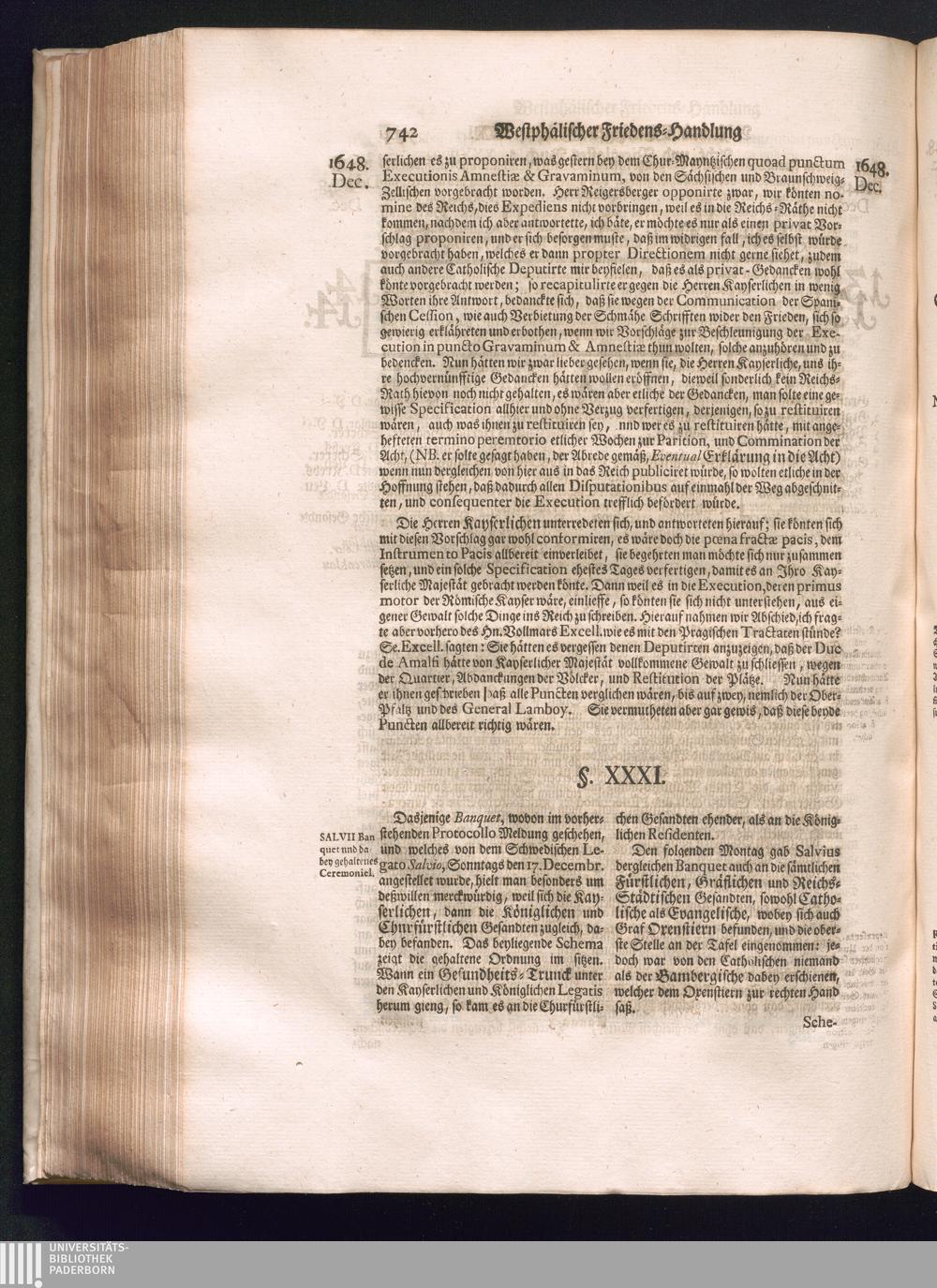 Sechster Theil (1736) Worinnen enthalten ist, was vom Monath Junio des Jahrs 1648. biß zu dem, im Jahr 1649. völlig erfolgten Schluß und Ende des Universal-Friedens-Congressus zu Oßnabrück und Münster, gehandelt und geschlossen worden