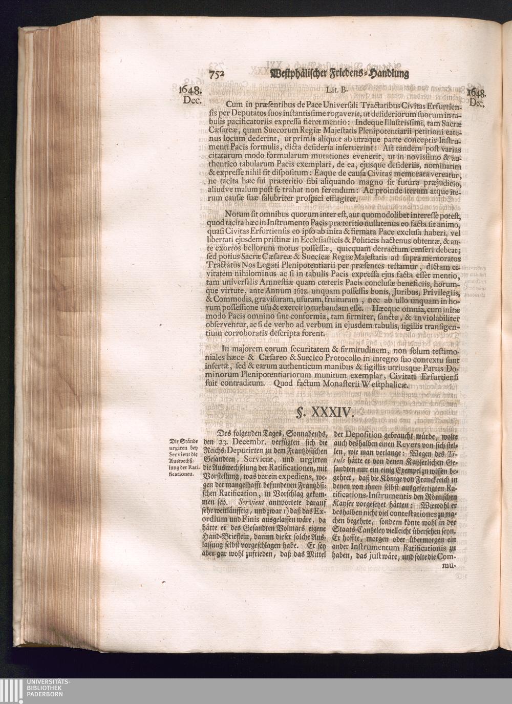 Sechster Theil (1736) Worinnen enthalten ist, was vom Monath Junio des Jahrs 1648. biß zu dem, im Jahr 1649. völlig erfolgten Schluß und Ende des Universal-Friedens-Congressus zu Oßnabrück und Münster, gehandelt und geschlossen worden