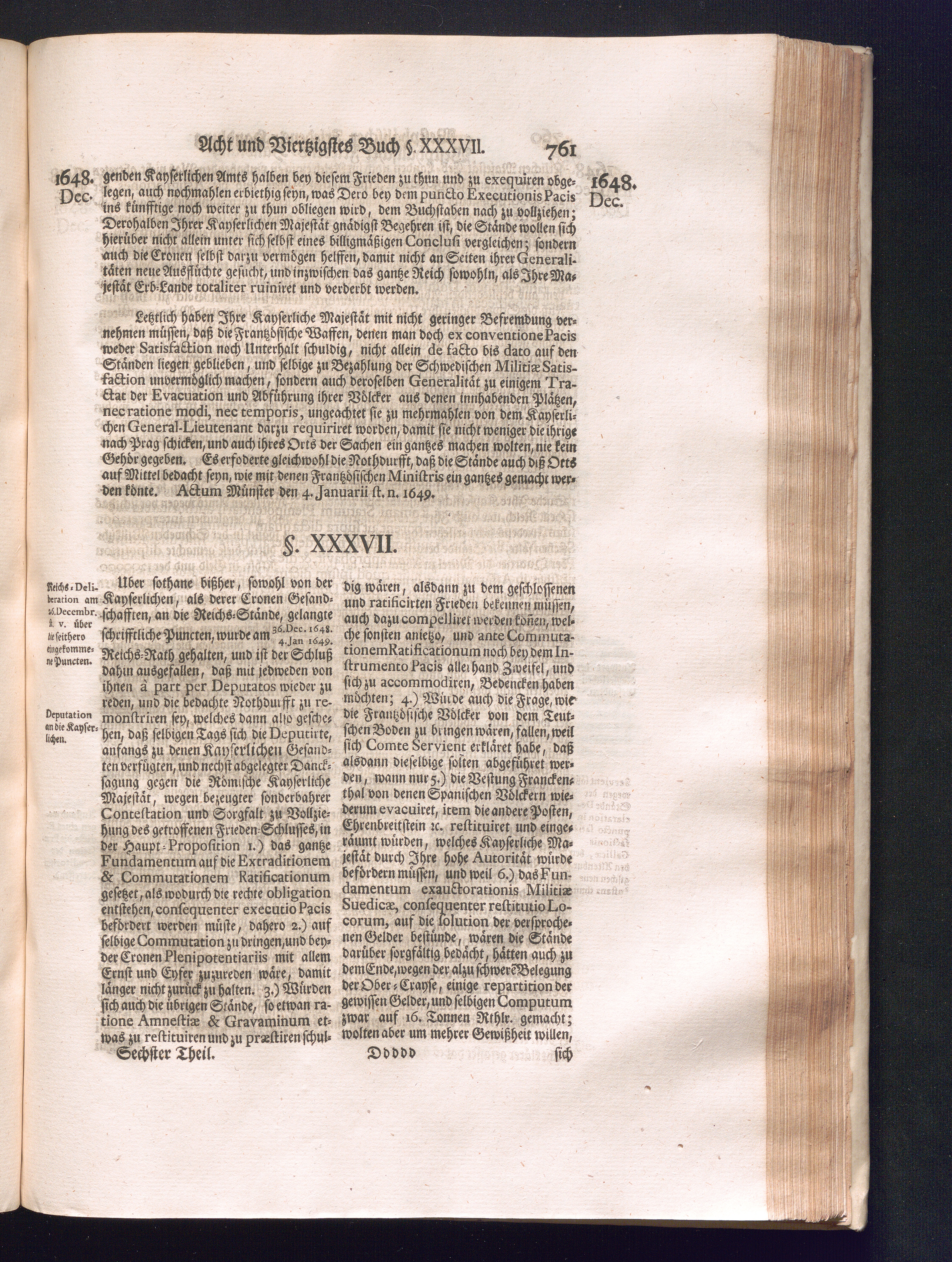 Sechster Theil (1736) Worinnen enthalten ist, was vom Monath Junio des Jahrs 1648. biß zu dem, im Jahr 1649. völlig erfolgten Schluß und Ende des Universal-Friedens-Congressus zu Oßnabrück und Münster, gehandelt und geschlossen worden