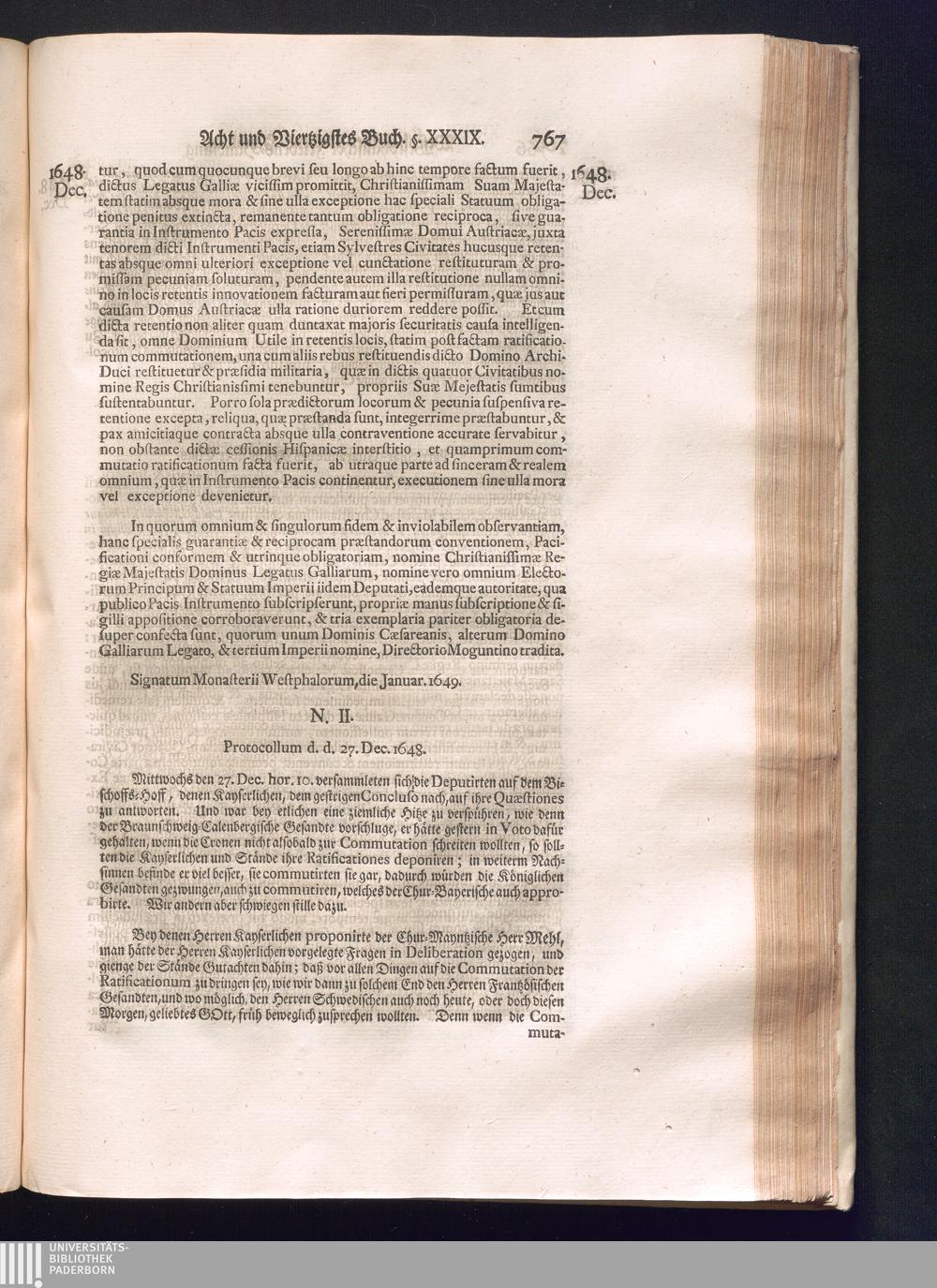 Sechster Theil (1736) Worinnen enthalten ist, was vom Monath Junio des Jahrs 1648. biß zu dem, im Jahr 1649. völlig erfolgten Schluß und Ende des Universal-Friedens-Congressus zu Oßnabrück und Münster, gehandelt und geschlossen worden