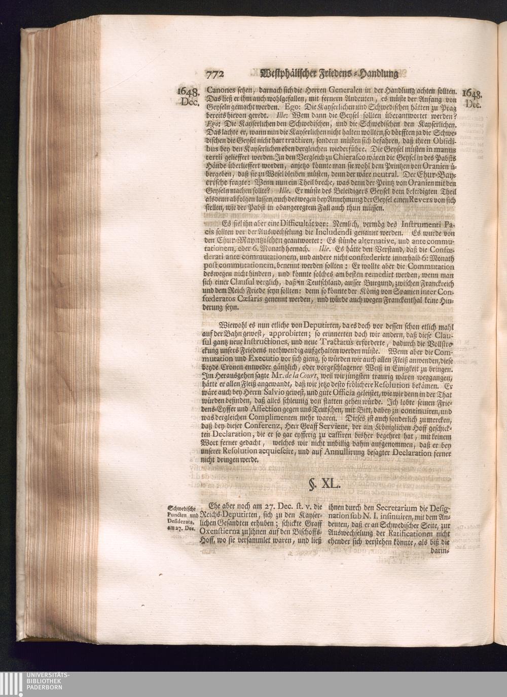 Sechster Theil (1736) Worinnen enthalten ist, was vom Monath Junio des Jahrs 1648. biß zu dem, im Jahr 1649. völlig erfolgten Schluß und Ende des Universal-Friedens-Congressus zu Oßnabrück und Münster, gehandelt und geschlossen worden