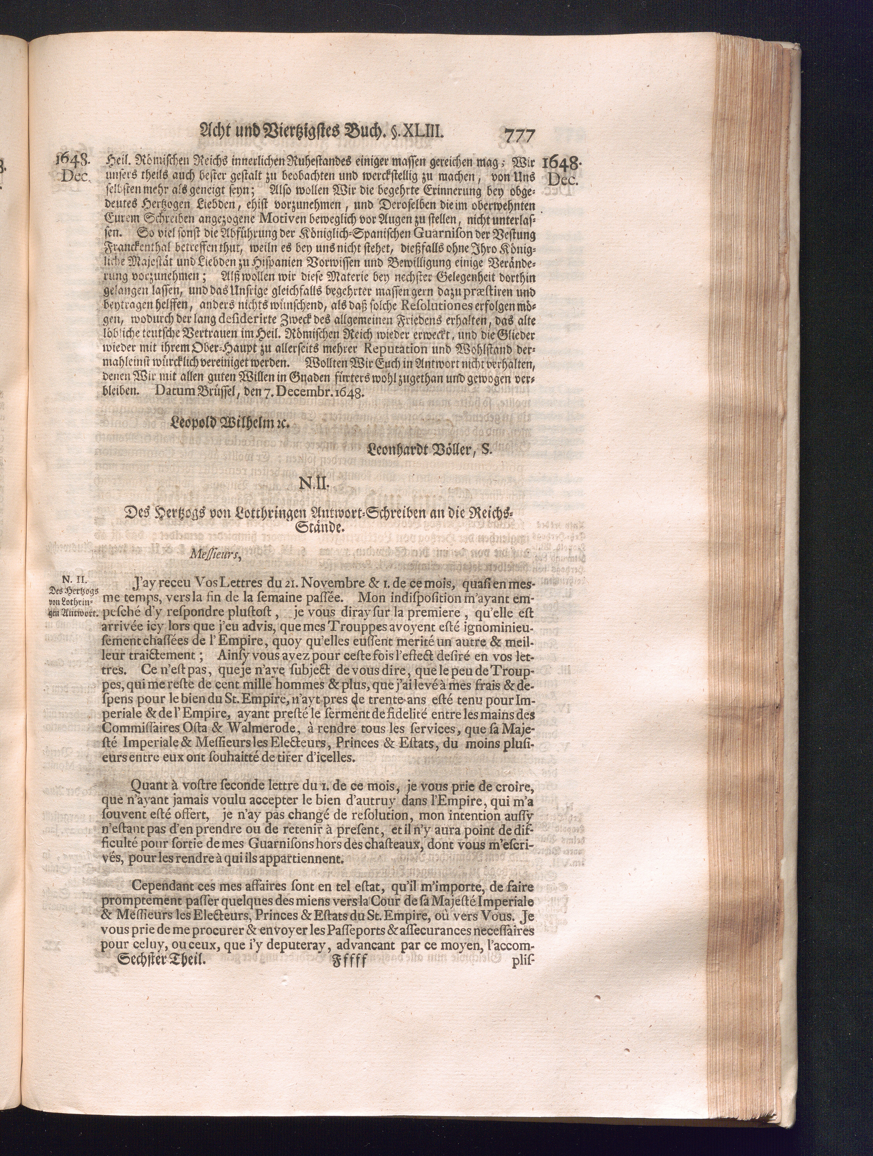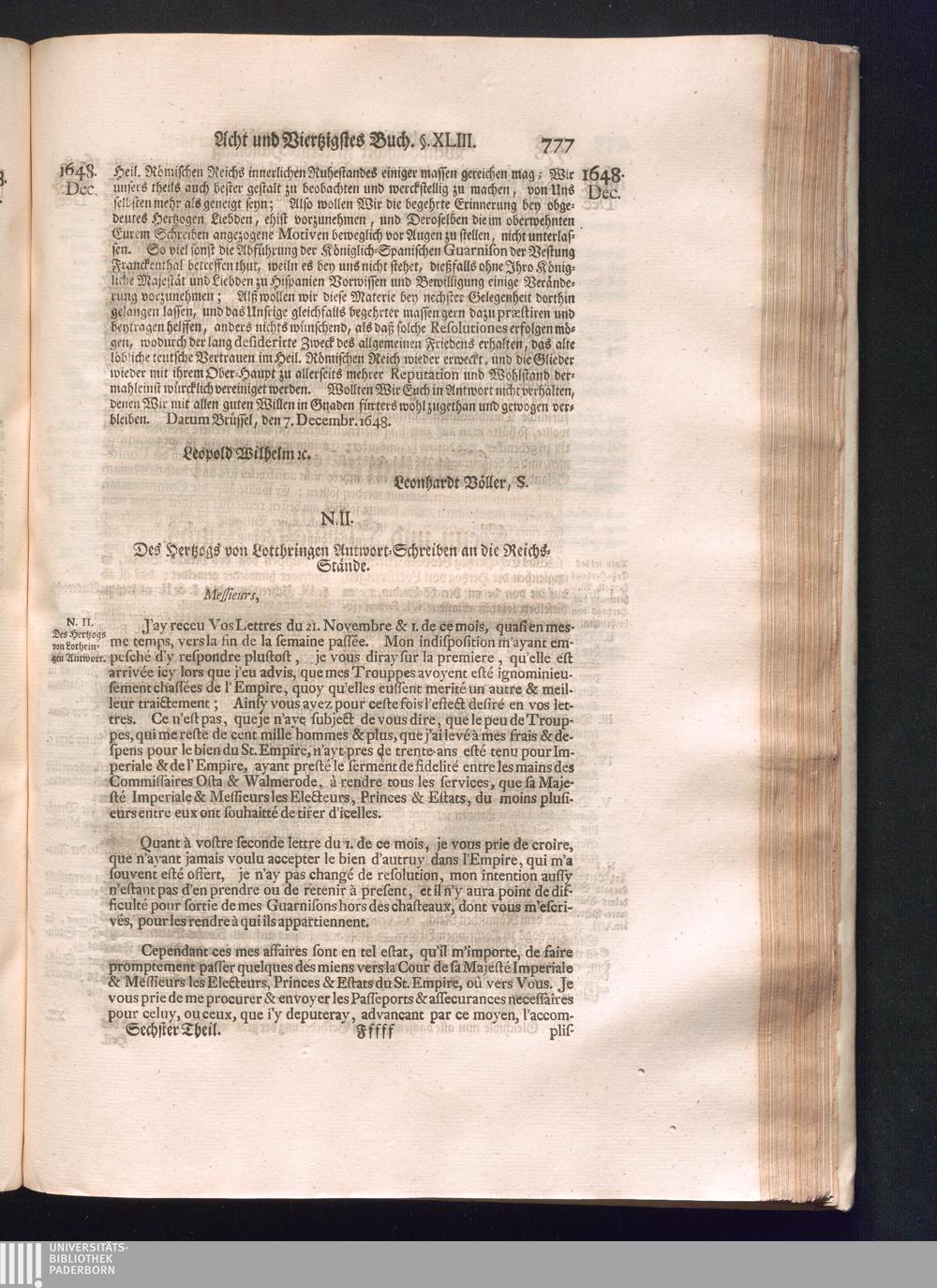 Sechster Theil (1736) Worinnen enthalten ist, was vom Monath Junio des Jahrs 1648. biß zu dem, im Jahr 1649. völlig erfolgten Schluß und Ende des Universal-Friedens-Congressus zu Oßnabrück und Münster, gehandelt und geschlossen worden