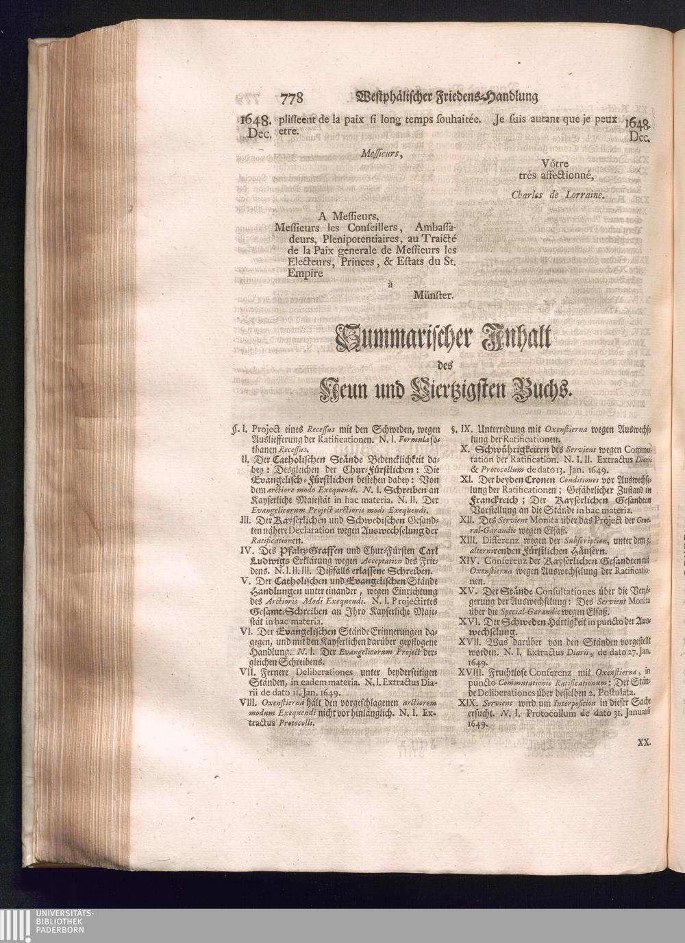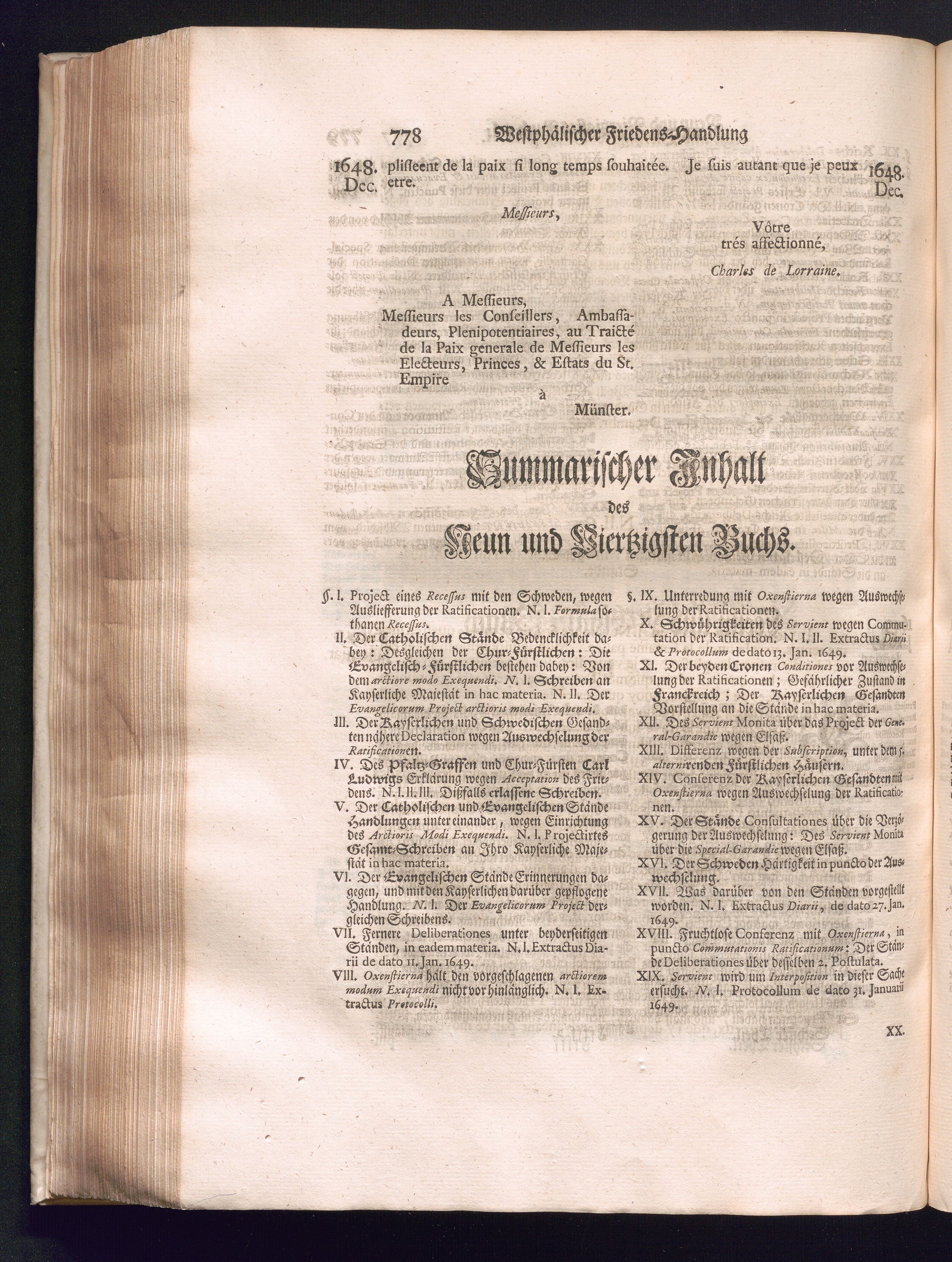 Sechster Theil (1736) Worinnen enthalten ist, was vom Monath Junio des Jahrs 1648. biß zu dem, im Jahr 1649. völlig erfolgten Schluß und Ende des Universal-Friedens-Congressus zu Oßnabrück und Münster, gehandelt und geschlossen worden