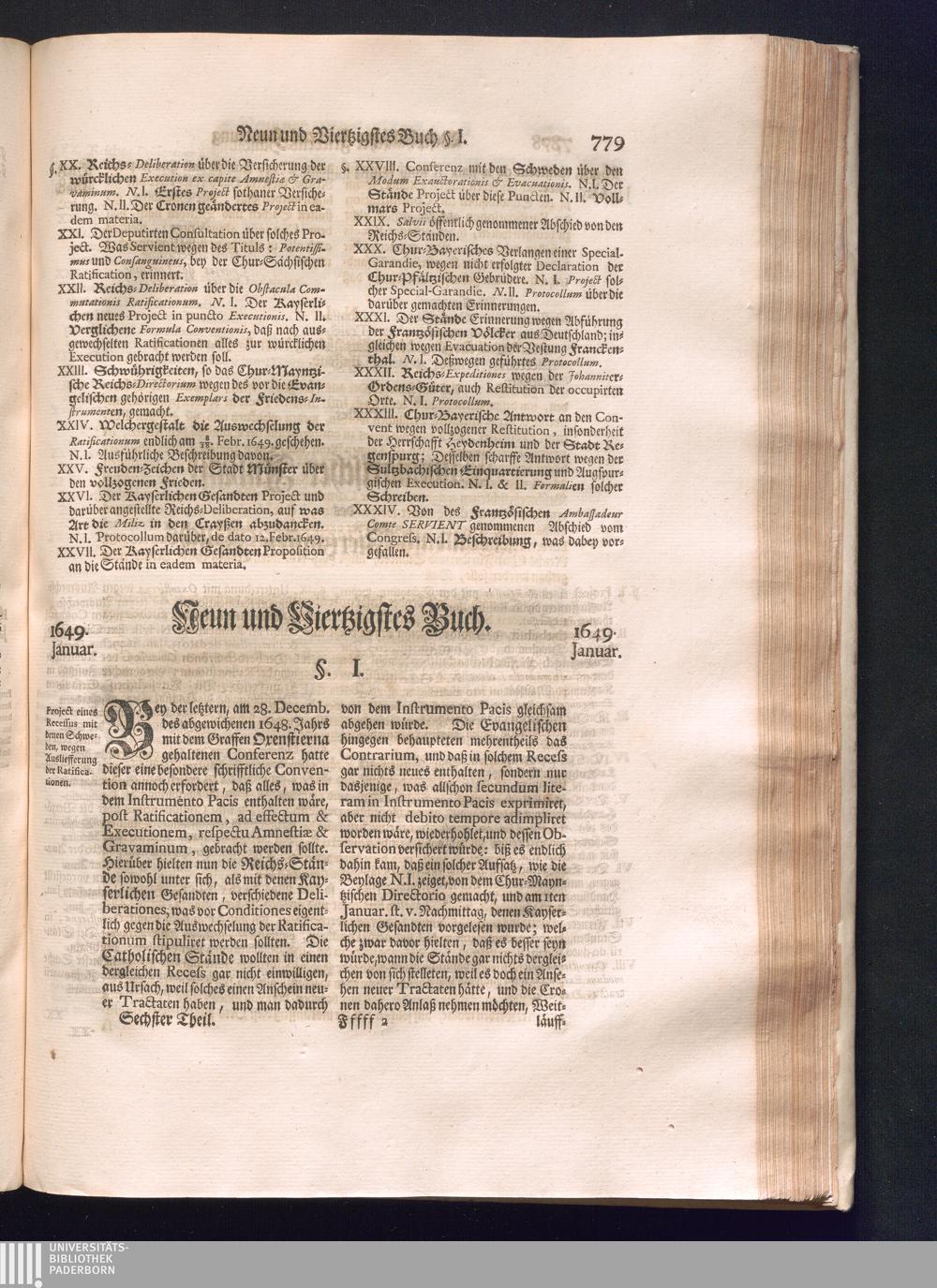 Sechster Theil (1736) Worinnen enthalten ist, was vom Monath Junio des Jahrs 1648. biß zu dem, im Jahr 1649. völlig erfolgten Schluß und Ende des Universal-Friedens-Congressus zu Oßnabrück und Münster, gehandelt und geschlossen worden
