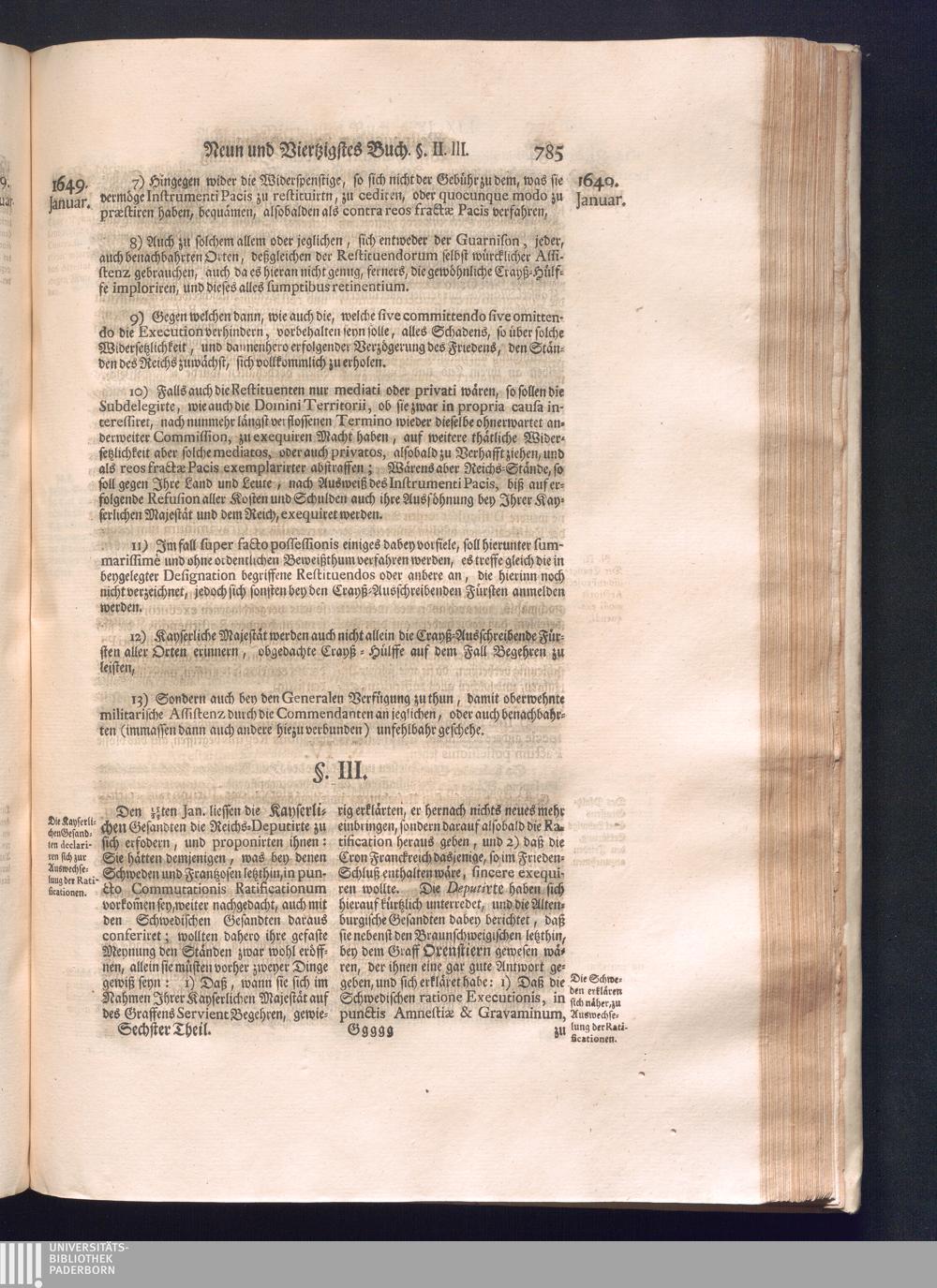 Sechster Theil (1736) Worinnen enthalten ist, was vom Monath Junio des Jahrs 1648. biß zu dem, im Jahr 1649. völlig erfolgten Schluß und Ende des Universal-Friedens-Congressus zu Oßnabrück und Münster, gehandelt und geschlossen worden