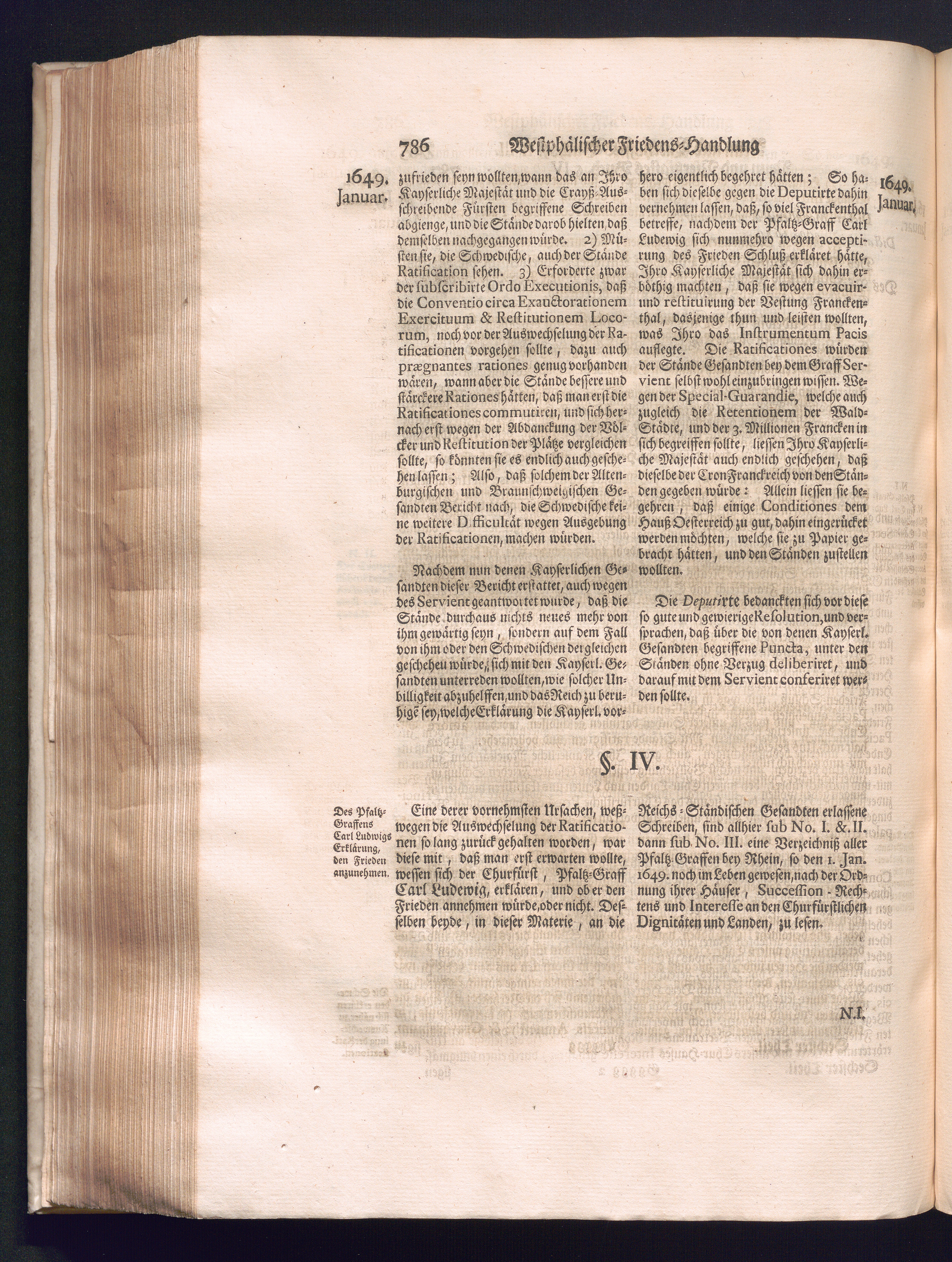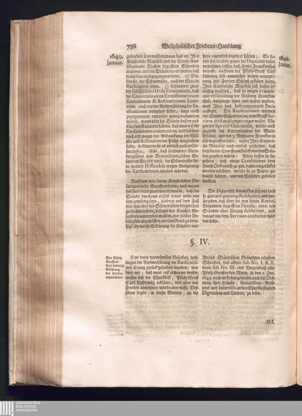 Sechster Theil (1736) Worinnen enthalten ist, was vom Monath Junio des Jahrs 1648. biß zu dem, im Jahr 1649. völlig erfolgten Schluß und Ende des Universal-Friedens-Congressus zu Oßnabrück und Münster, gehandelt und geschlossen worden