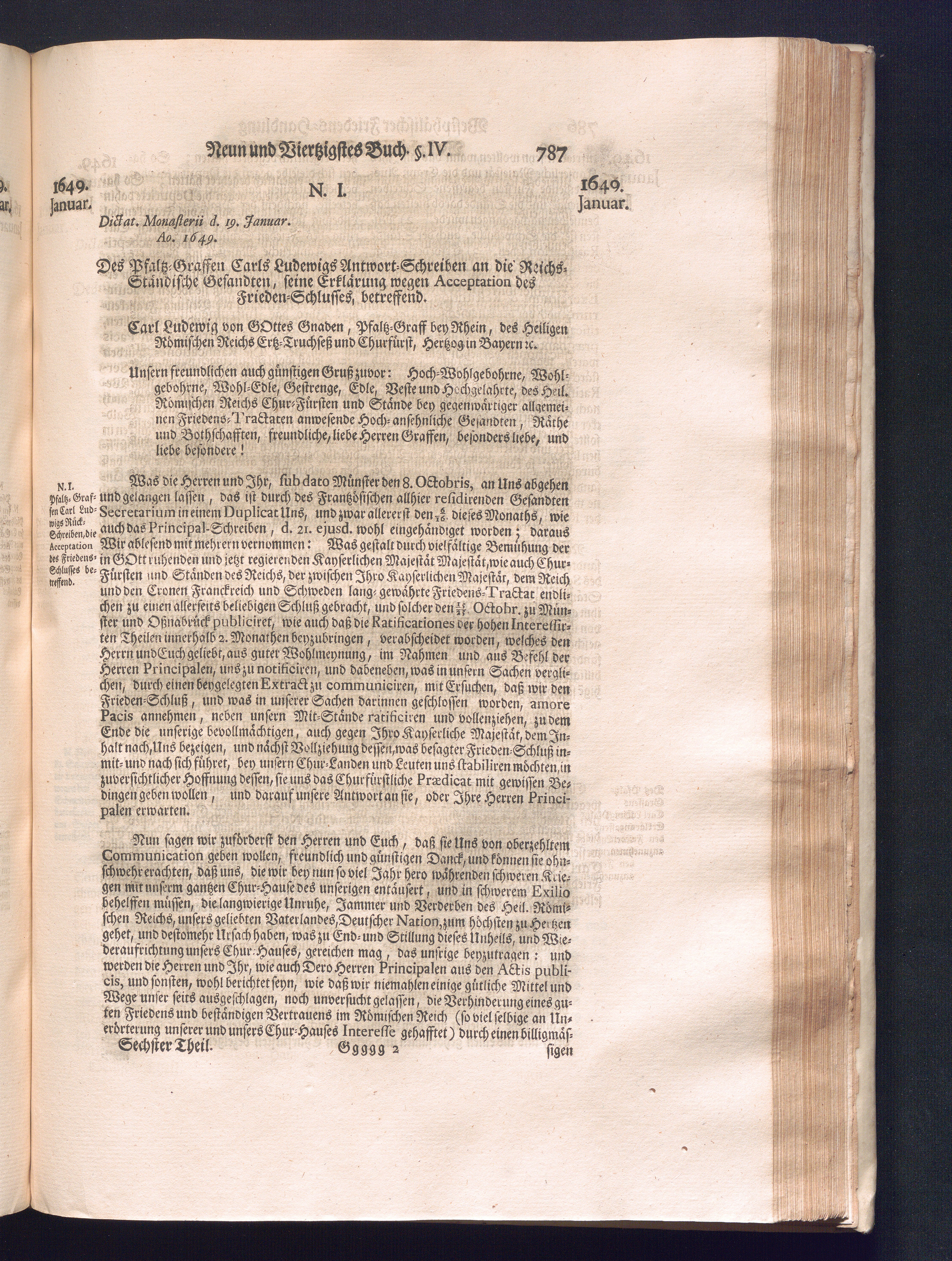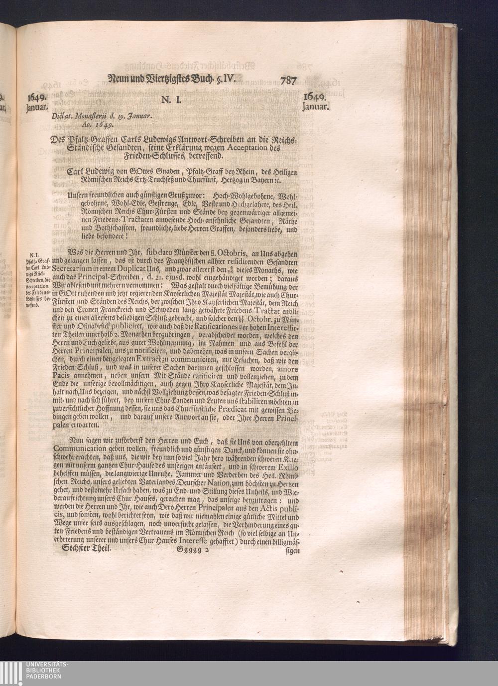 Sechster Theil (1736) Worinnen enthalten ist, was vom Monath Junio des Jahrs 1648. biß zu dem, im Jahr 1649. völlig erfolgten Schluß und Ende des Universal-Friedens-Congressus zu Oßnabrück und Münster, gehandelt und geschlossen worden
