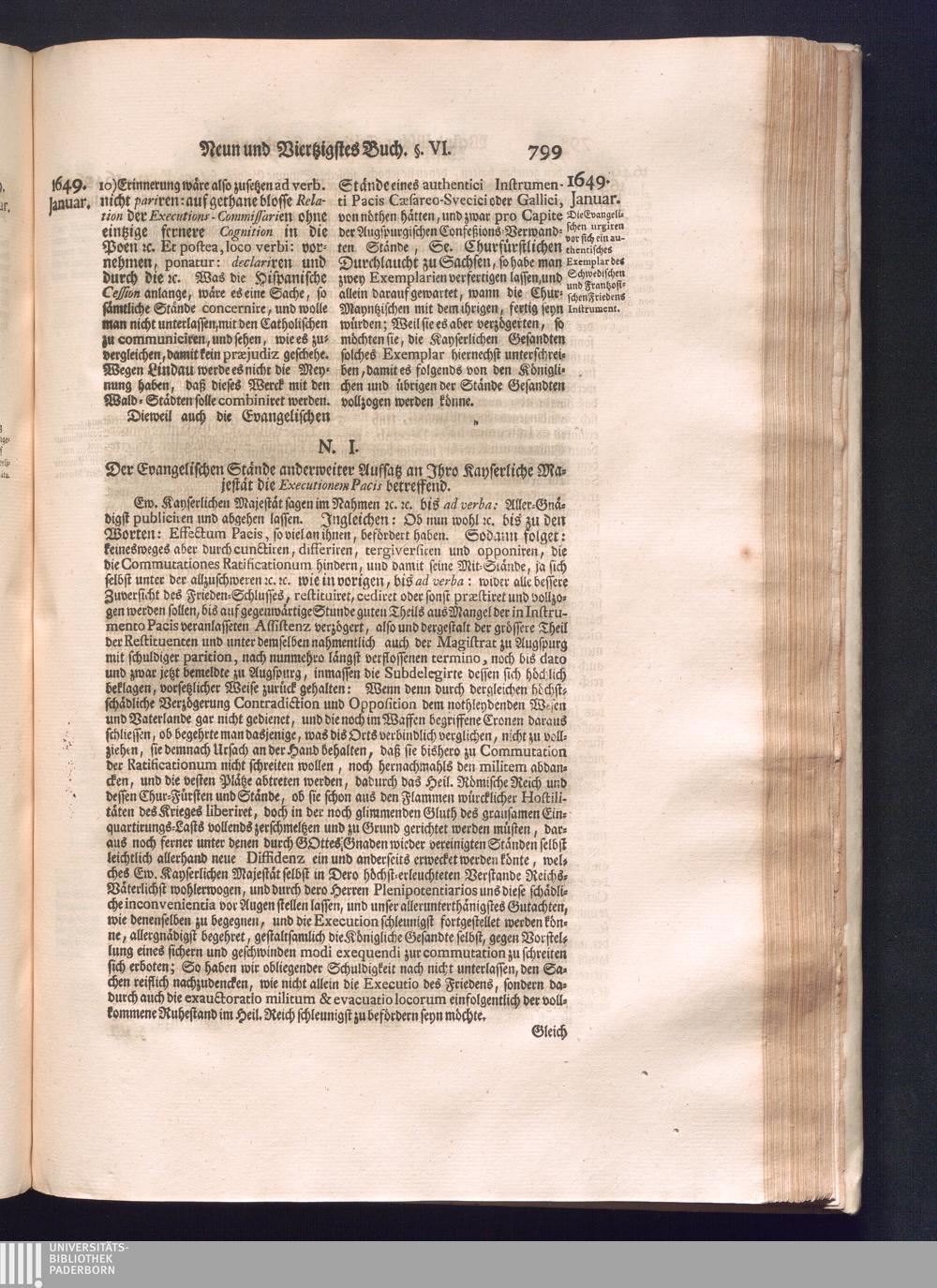 Sechster Theil (1736) Worinnen enthalten ist, was vom Monath Junio des Jahrs 1648. biß zu dem, im Jahr 1649. völlig erfolgten Schluß und Ende des Universal-Friedens-Congressus zu Oßnabrück und Münster, gehandelt und geschlossen worden