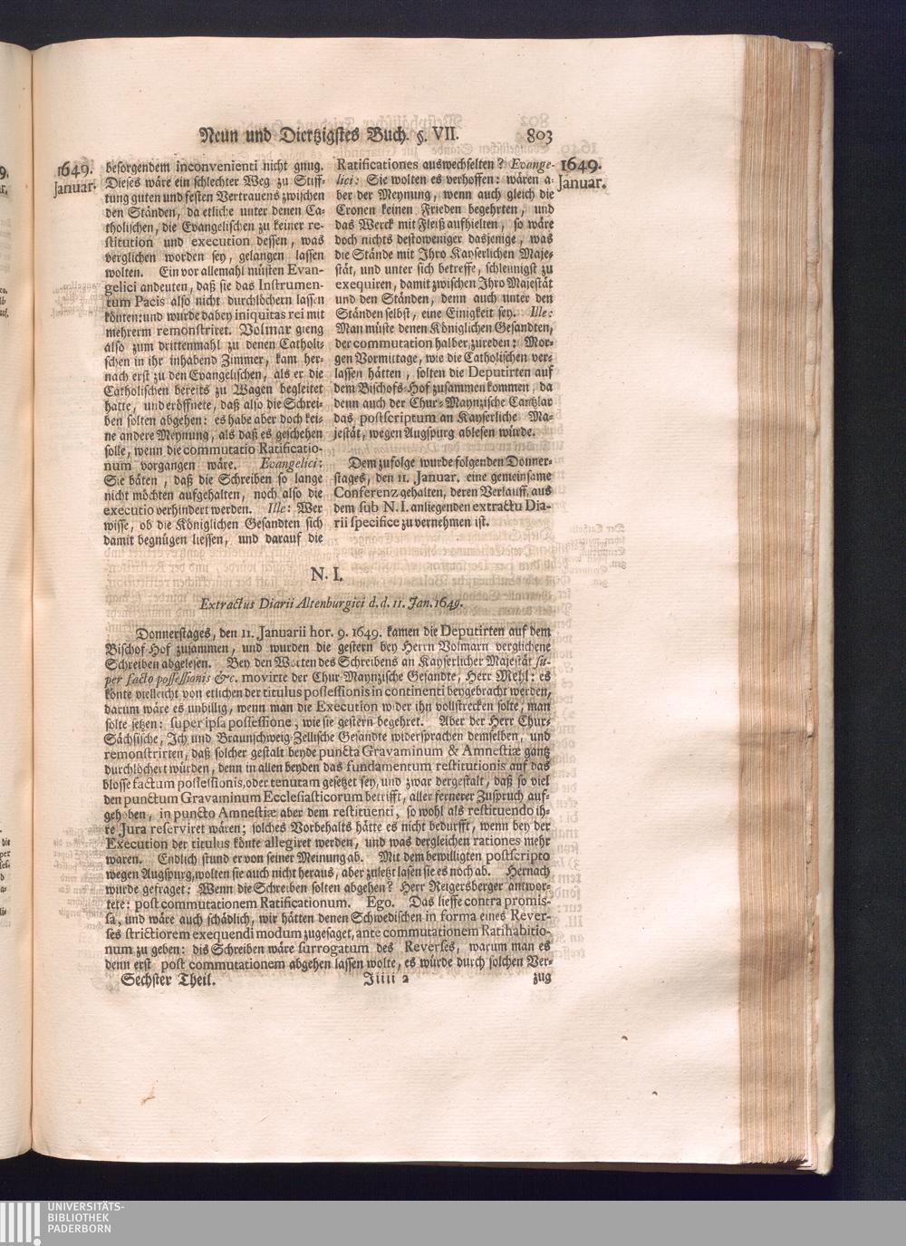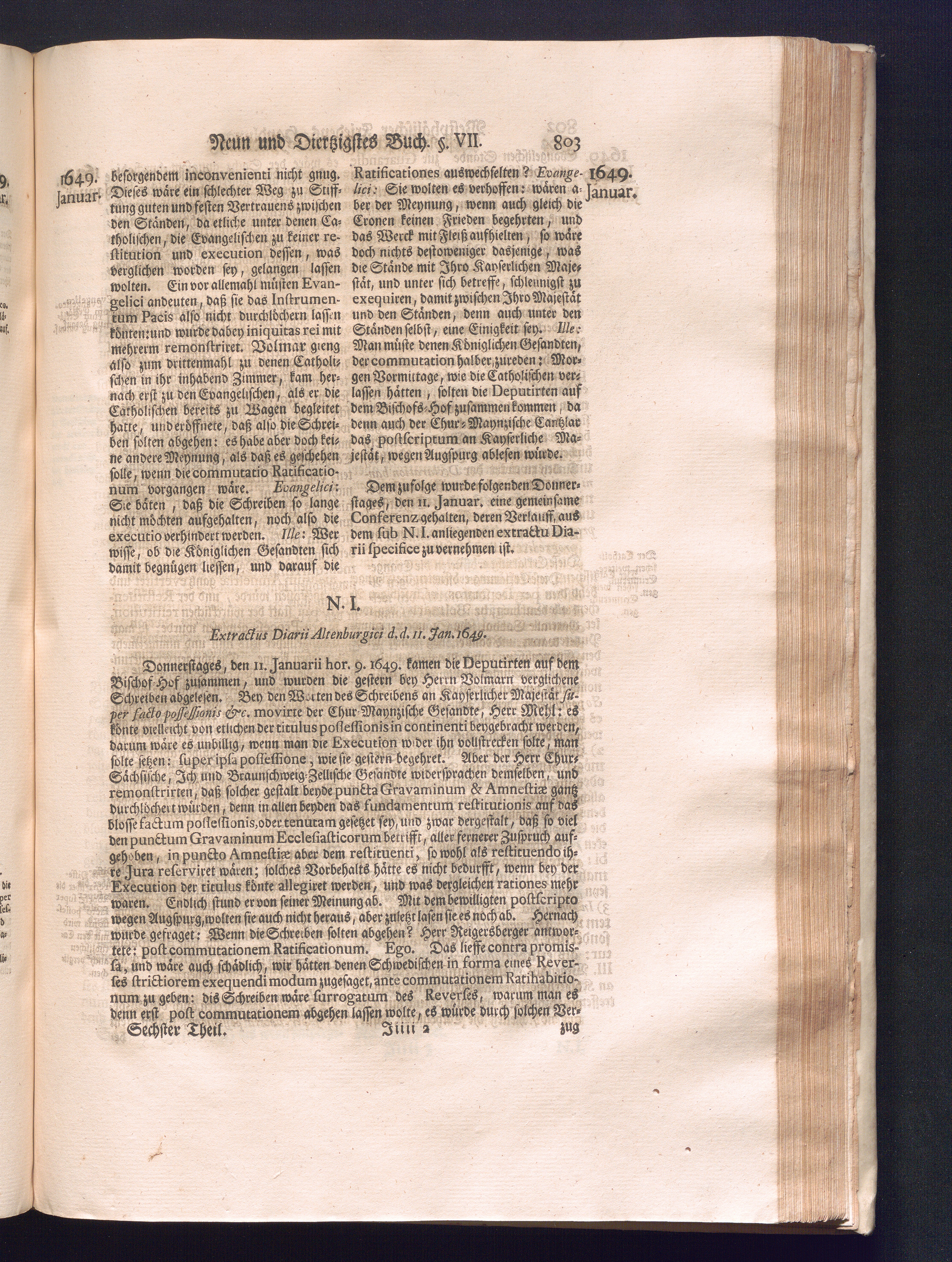 Sechster Theil (1736) Worinnen enthalten ist, was vom Monath Junio des Jahrs 1648. biß zu dem, im Jahr 1649. völlig erfolgten Schluß und Ende des Universal-Friedens-Congressus zu Oßnabrück und Münster, gehandelt und geschlossen worden