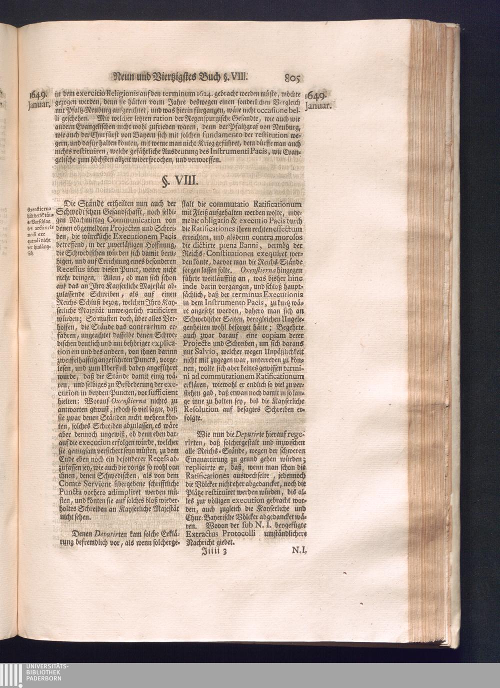 Sechster Theil (1736) Worinnen enthalten ist, was vom Monath Junio des Jahrs 1648. biß zu dem, im Jahr 1649. völlig erfolgten Schluß und Ende des Universal-Friedens-Congressus zu Oßnabrück und Münster, gehandelt und geschlossen worden