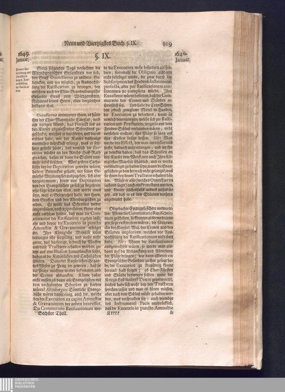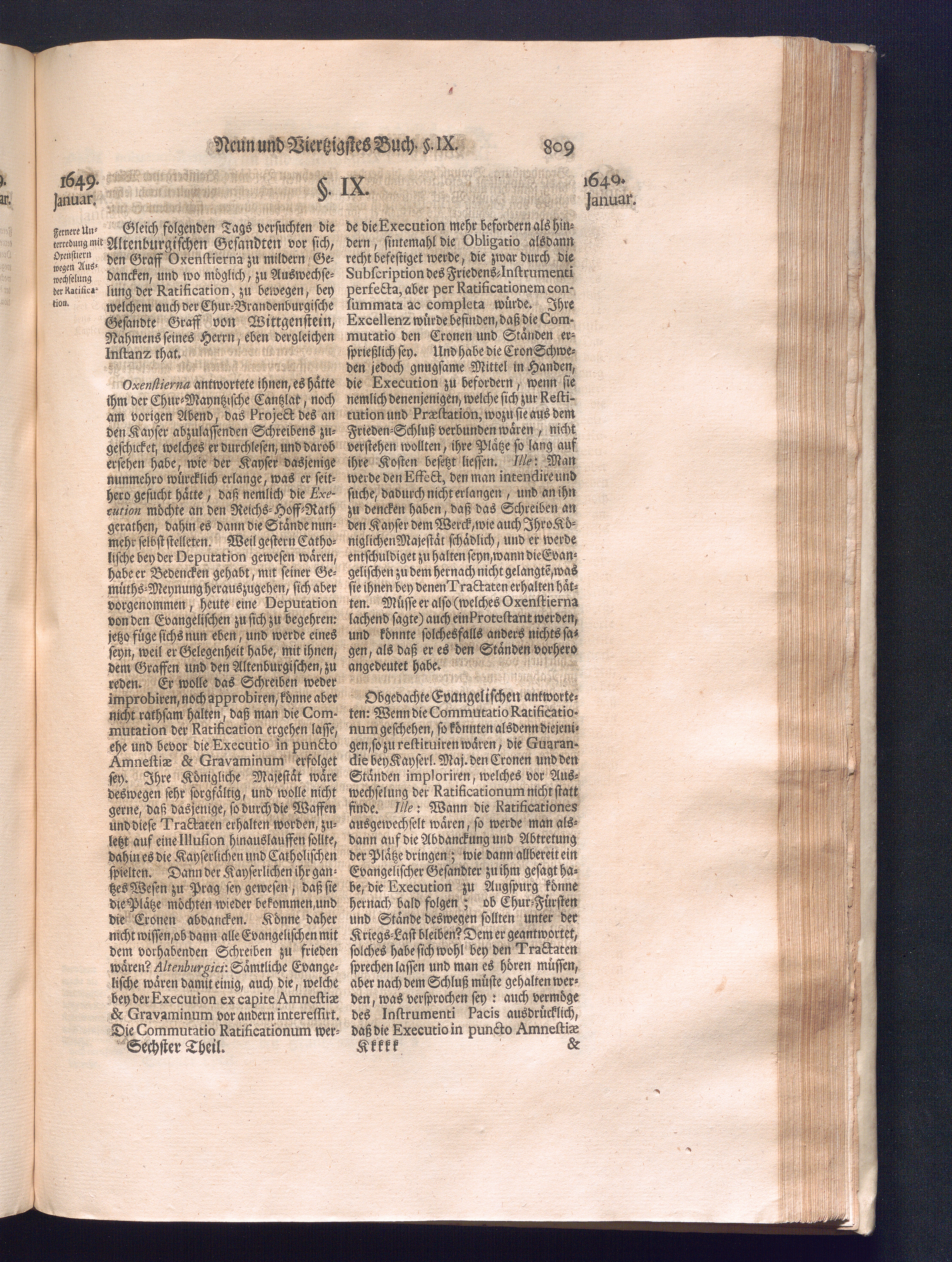 Sechster Theil (1736) Worinnen enthalten ist, was vom Monath Junio des Jahrs 1648. biß zu dem, im Jahr 1649. völlig erfolgten Schluß und Ende des Universal-Friedens-Congressus zu Oßnabrück und Münster, gehandelt und geschlossen worden