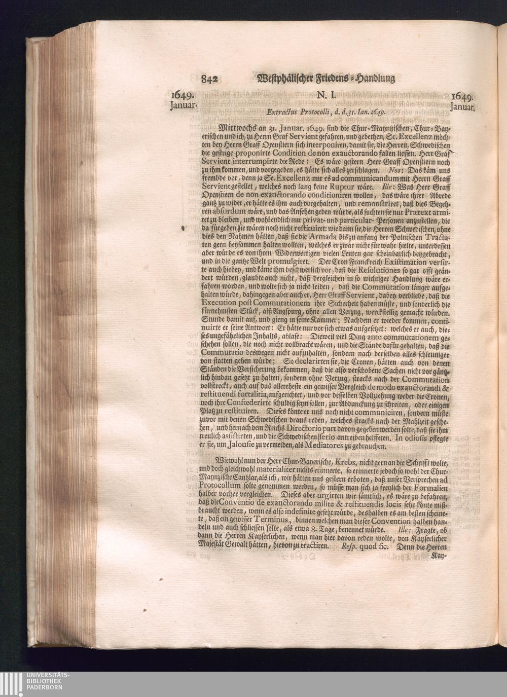 Sechster Theil (1736) Worinnen enthalten ist, was vom Monath Junio des Jahrs 1648. biß zu dem, im Jahr 1649. völlig erfolgten Schluß und Ende des Universal-Friedens-Congressus zu Oßnabrück und Münster, gehandelt und geschlossen worden