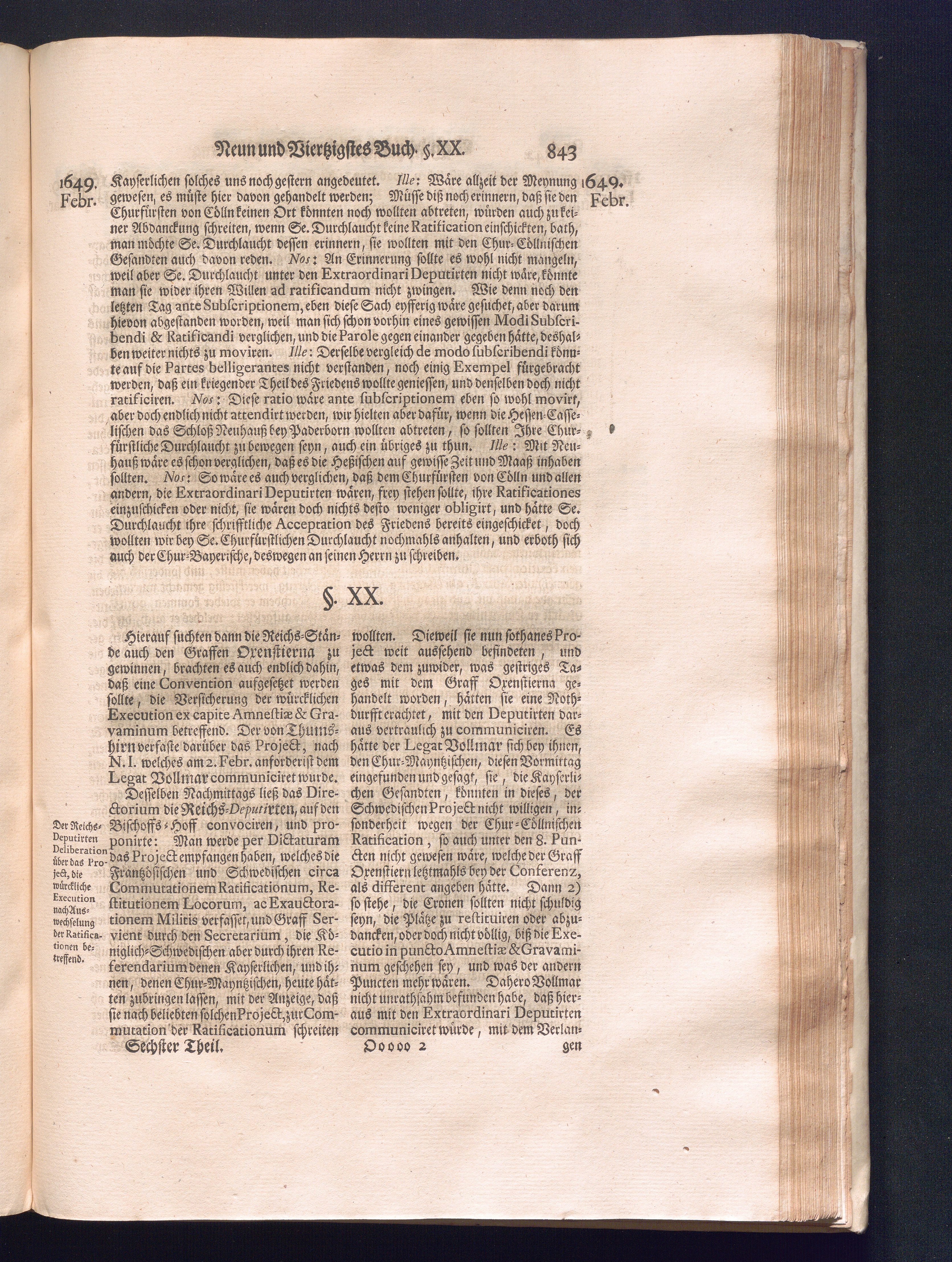 Sechster Theil (1736) Worinnen enthalten ist, was vom Monath Junio des Jahrs 1648. biß zu dem, im Jahr 1649. völlig erfolgten Schluß und Ende des Universal-Friedens-Congressus zu Oßnabrück und Münster, gehandelt und geschlossen worden
