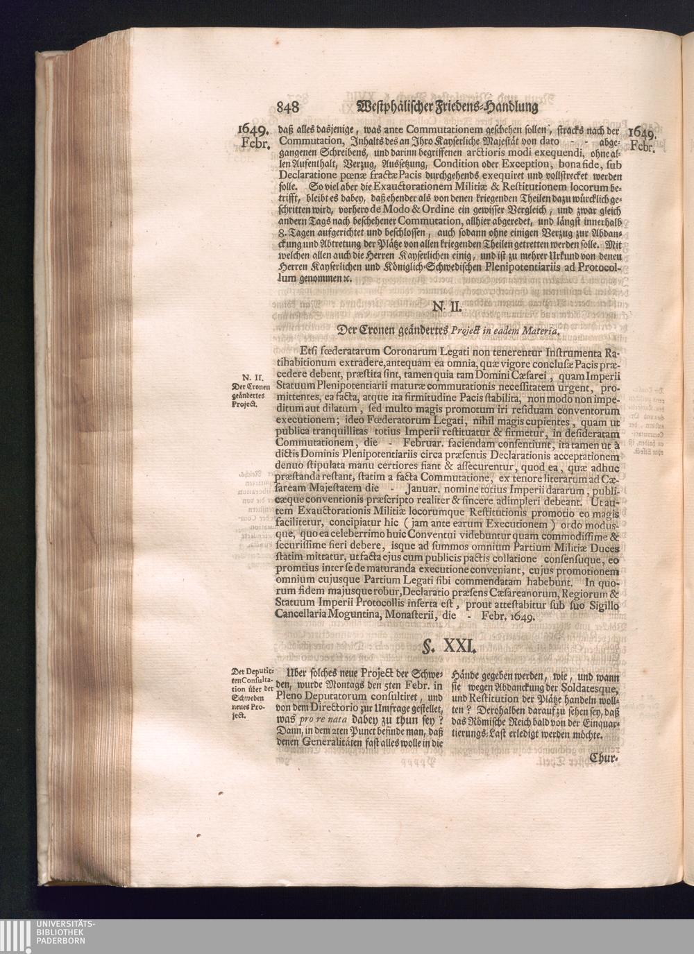 Sechster Theil (1736) Worinnen enthalten ist, was vom Monath Junio des Jahrs 1648. biß zu dem, im Jahr 1649. völlig erfolgten Schluß und Ende des Universal-Friedens-Congressus zu Oßnabrück und Münster, gehandelt und geschlossen worden