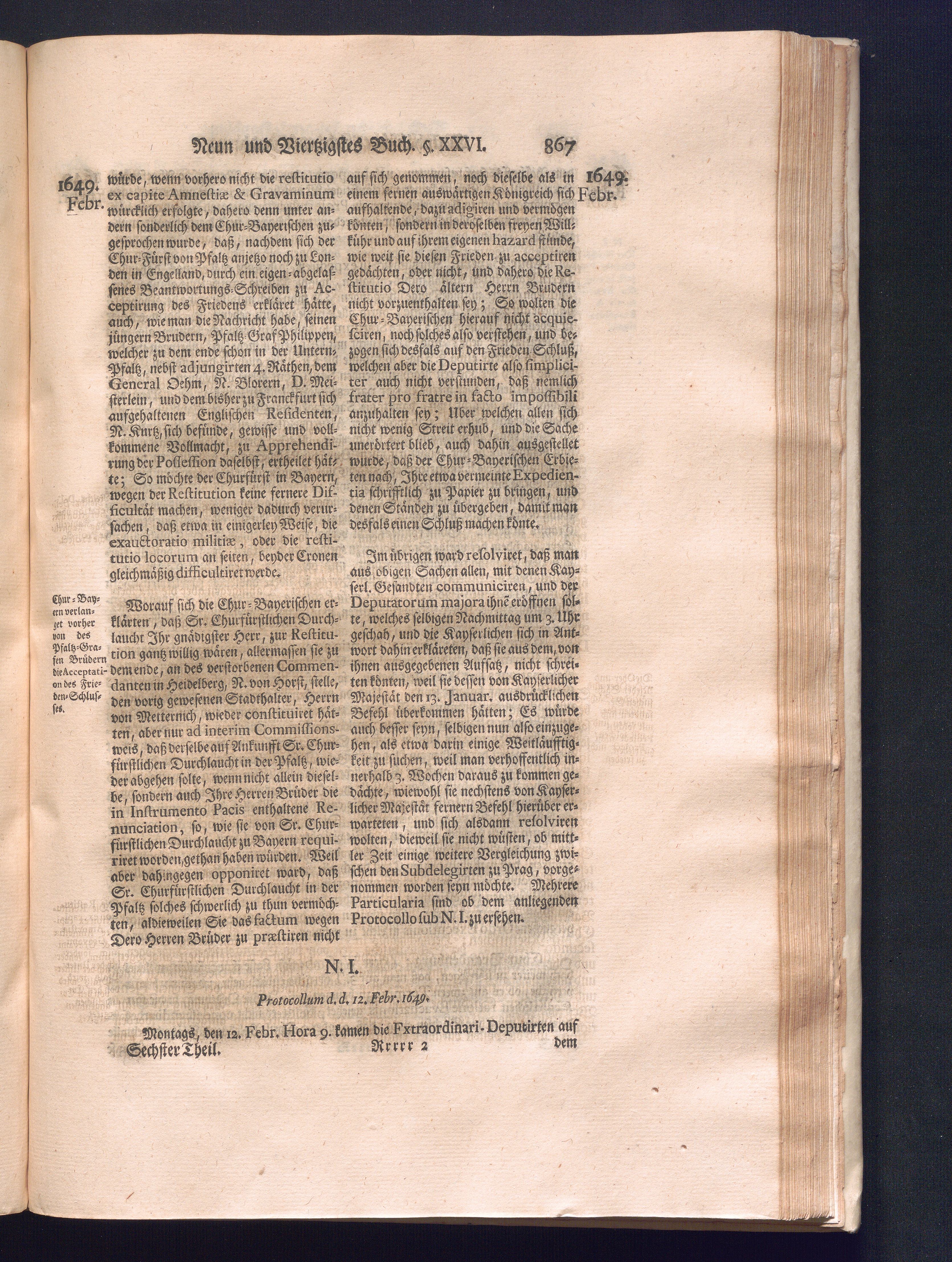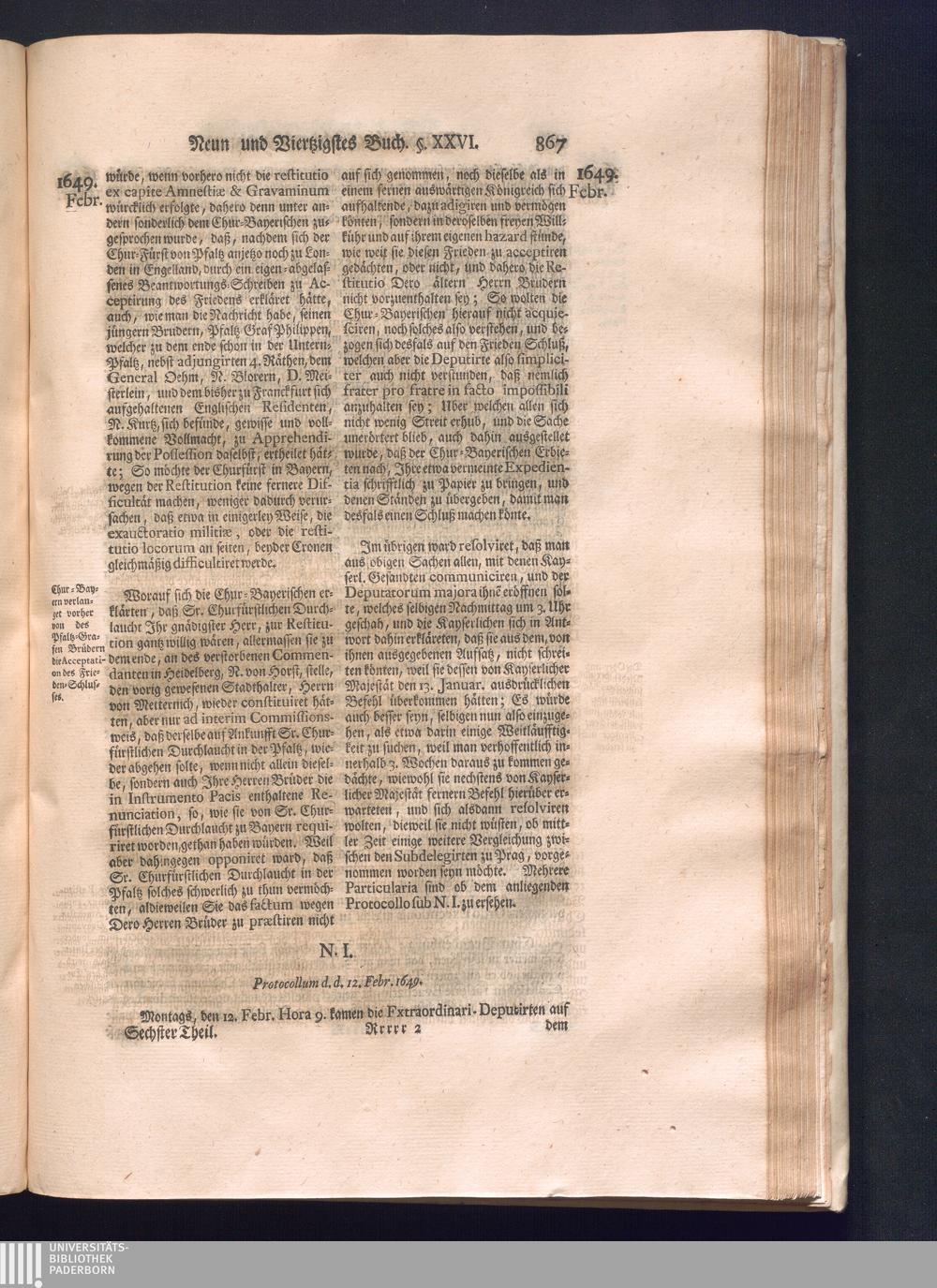 Sechster Theil (1736) Worinnen enthalten ist, was vom Monath Junio des Jahrs 1648. biß zu dem, im Jahr 1649. völlig erfolgten Schluß und Ende des Universal-Friedens-Congressus zu Oßnabrück und Münster, gehandelt und geschlossen worden