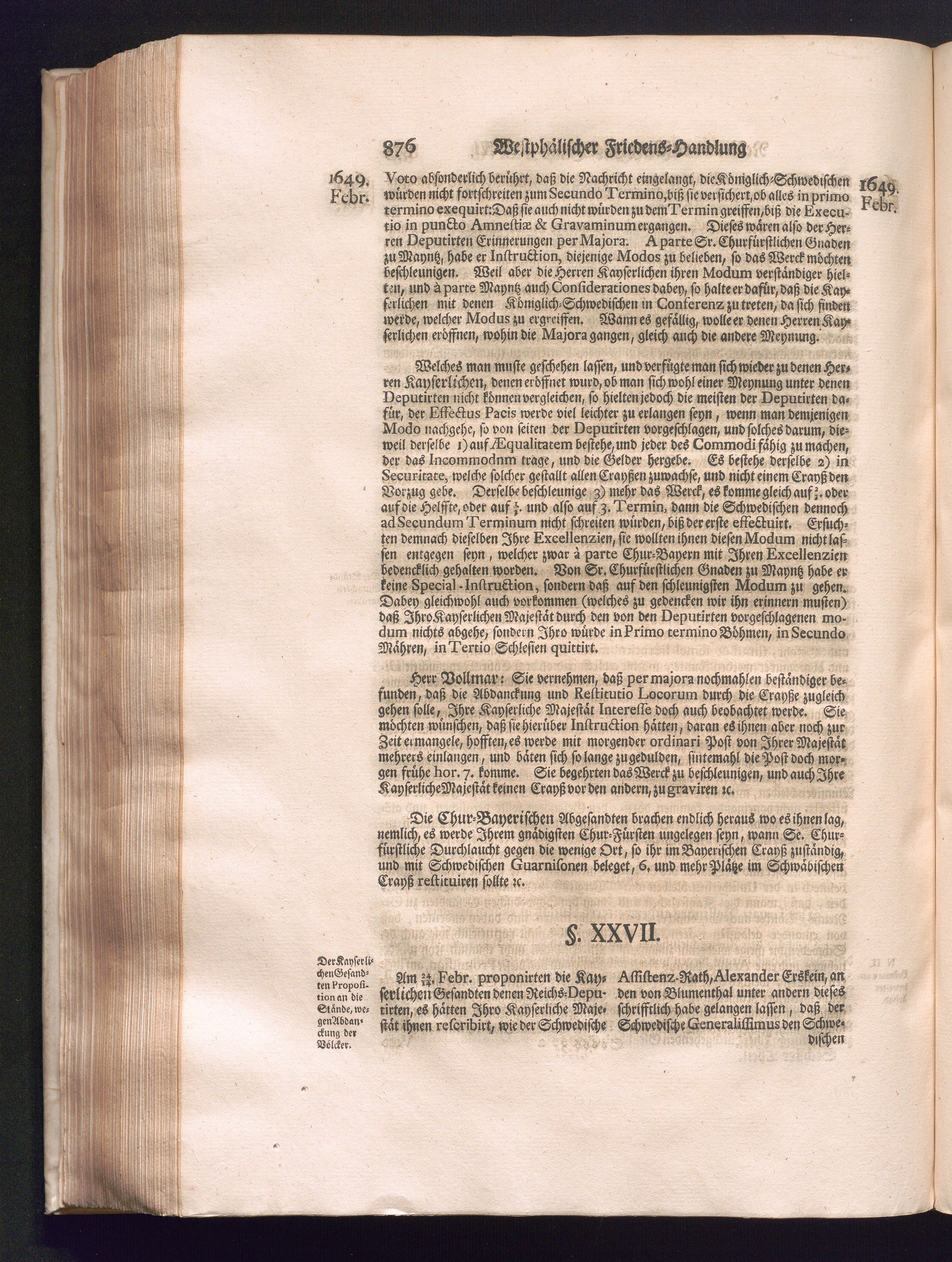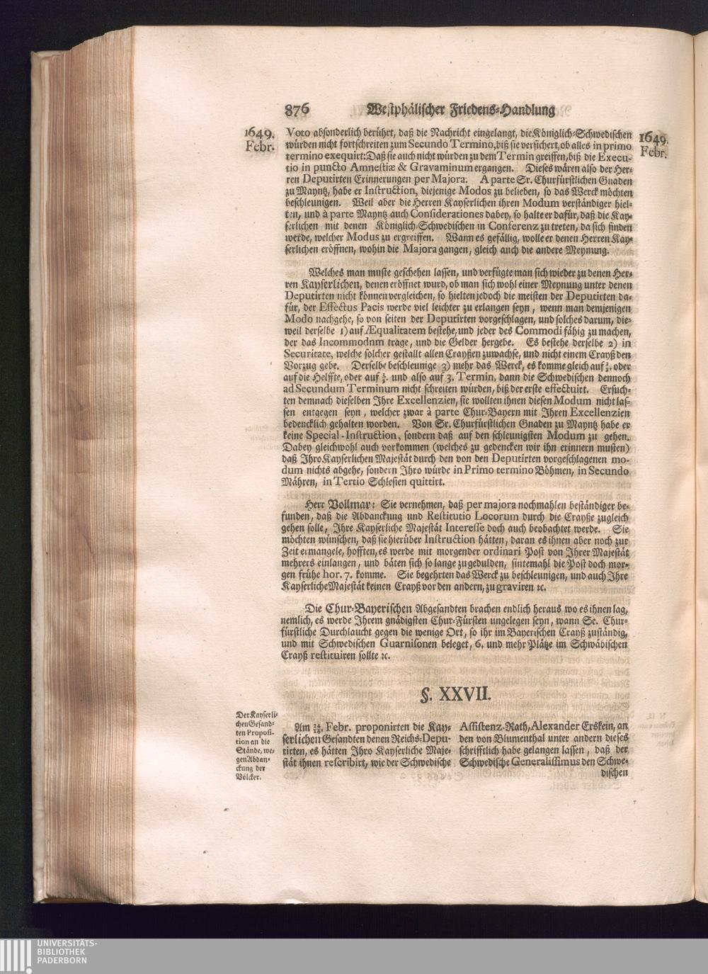 Sechster Theil (1736) Worinnen enthalten ist, was vom Monath Junio des Jahrs 1648. biß zu dem, im Jahr 1649. völlig erfolgten Schluß und Ende des Universal-Friedens-Congressus zu Oßnabrück und Münster, gehandelt und geschlossen worden