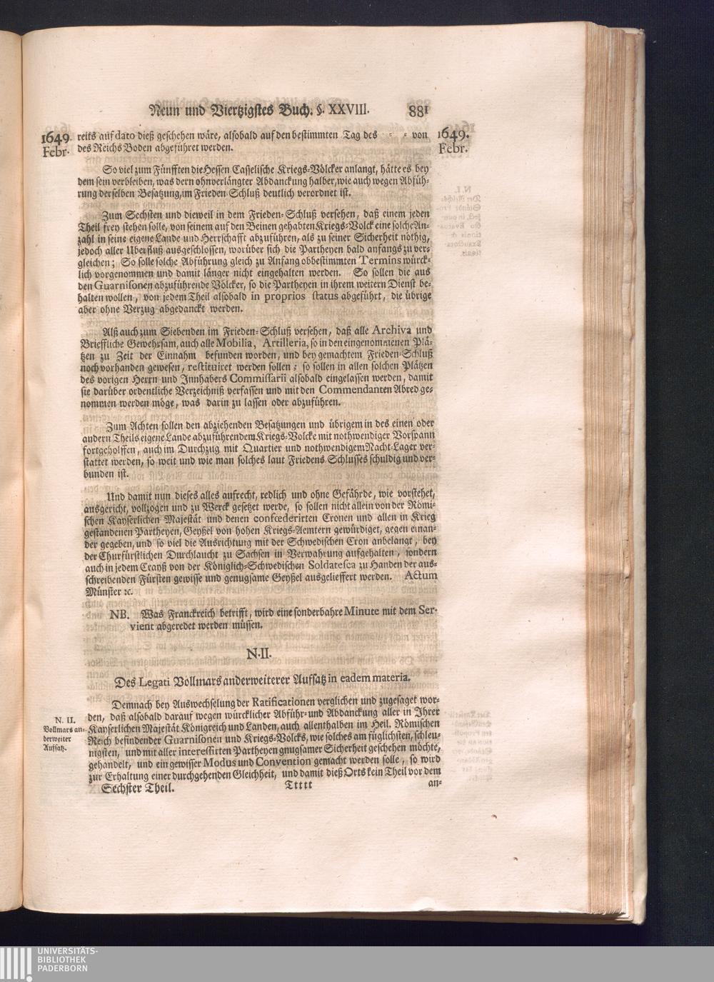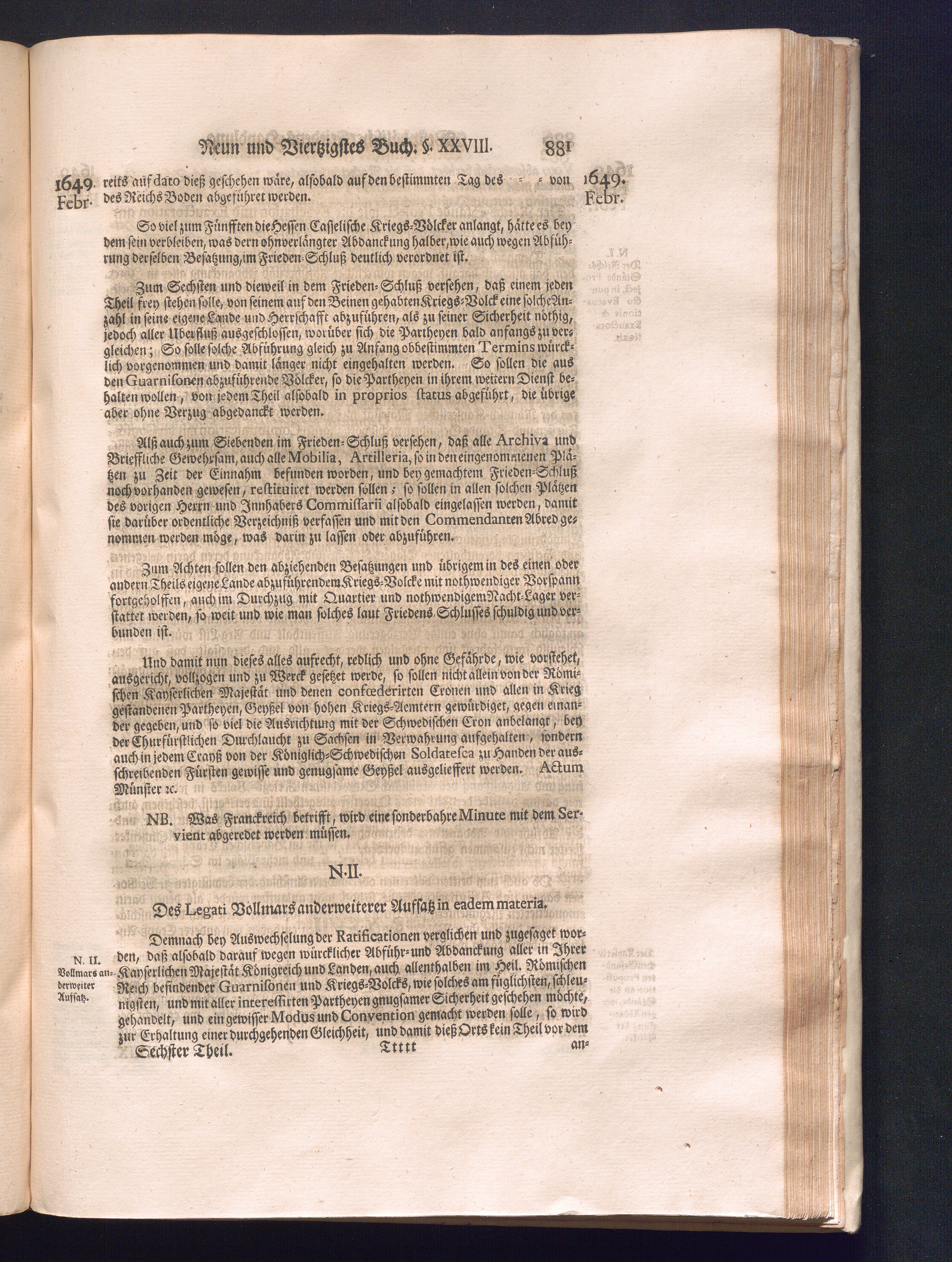 Sechster Theil (1736) Worinnen enthalten ist, was vom Monath Junio des Jahrs 1648. biß zu dem, im Jahr 1649. völlig erfolgten Schluß und Ende des Universal-Friedens-Congressus zu Oßnabrück und Münster, gehandelt und geschlossen worden