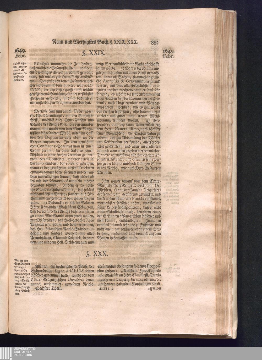Sechster Theil (1736) Worinnen enthalten ist, was vom Monath Junio des Jahrs 1648. biß zu dem, im Jahr 1649. völlig erfolgten Schluß und Ende des Universal-Friedens-Congressus zu Oßnabrück und Münster, gehandelt und geschlossen worden